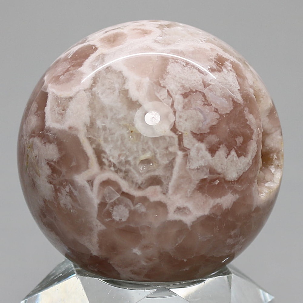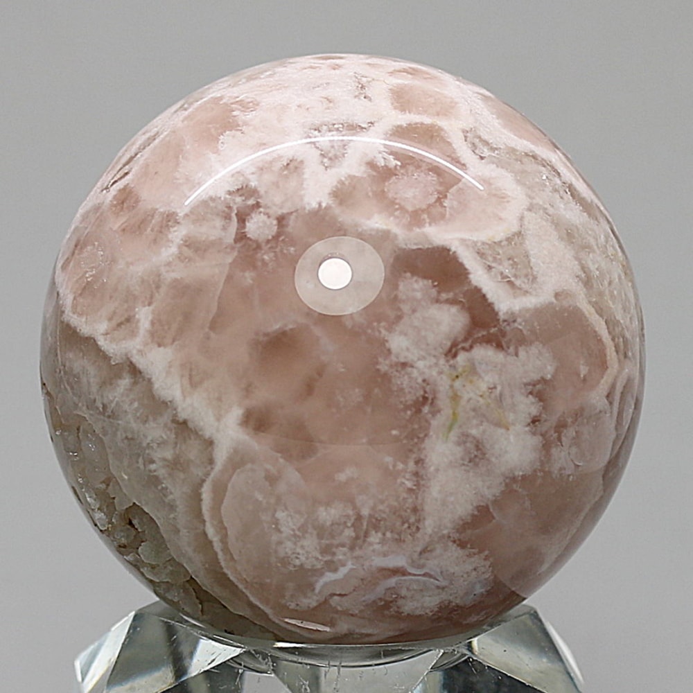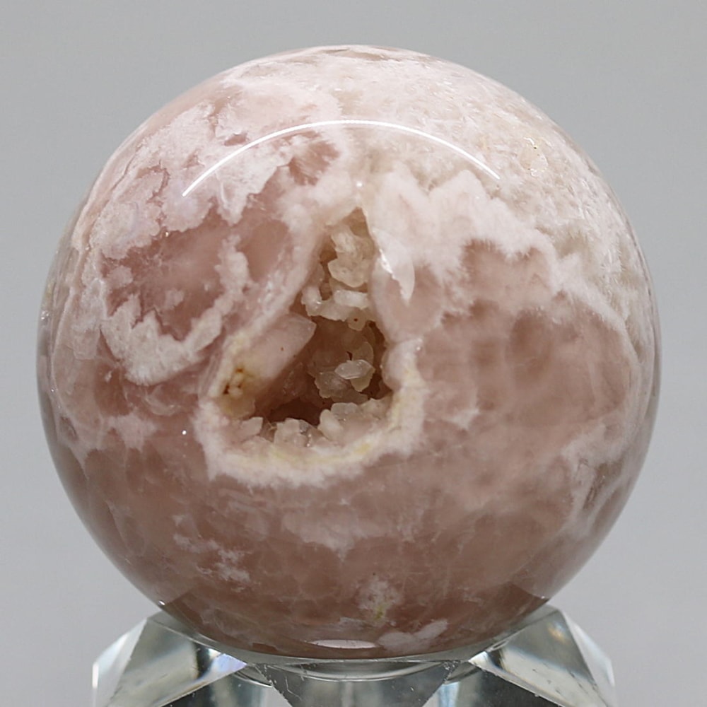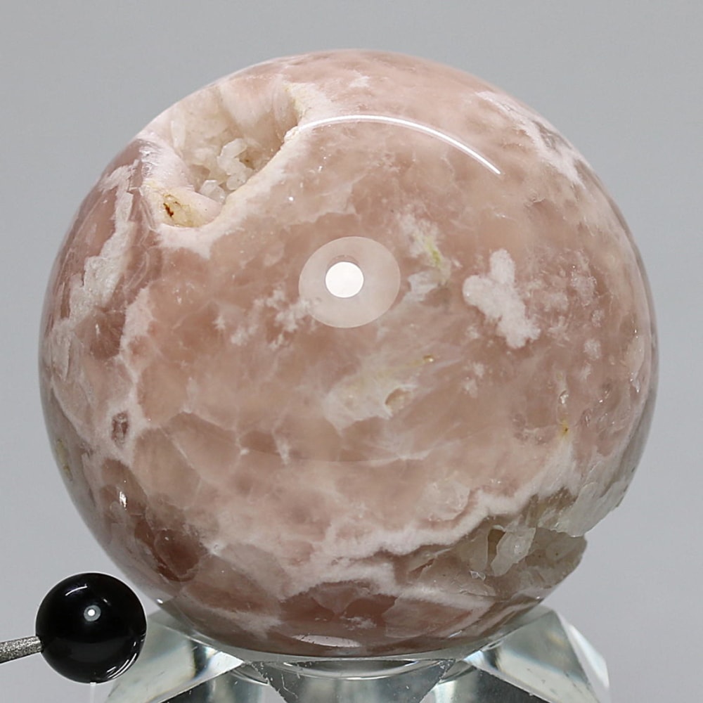 [高品質]マダガスカル産フラワーアゲート丸玉/ピンクアメジスト共生桜瑪瑙スフィア(直径約59.2mm・笑口ドゥルージータイプ)