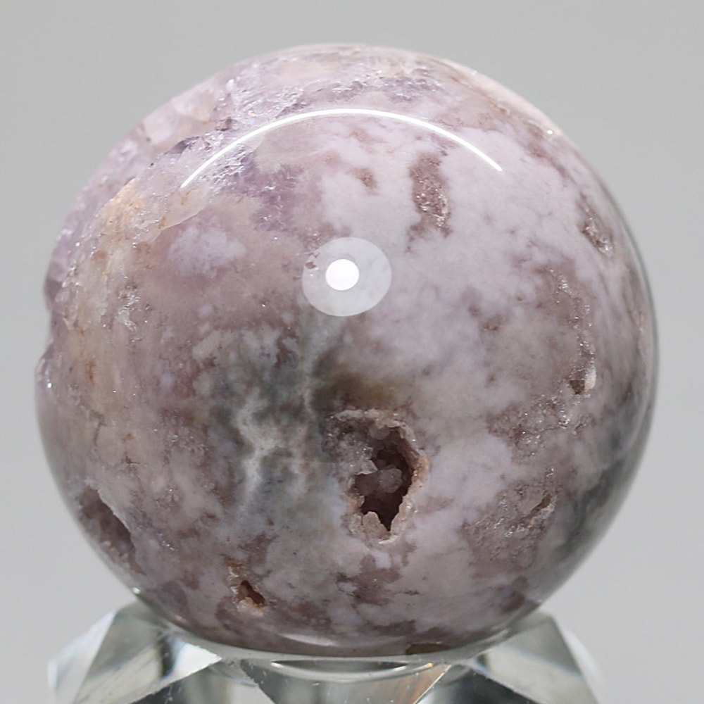 [高品質]マダガスカル産フラワーアゲート丸玉/ピンクアメジスト共生桜瑪瑙スフィア(直径約56.3mm・笑口ドゥルージータイプ)