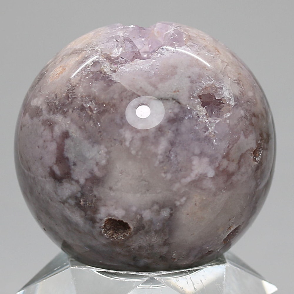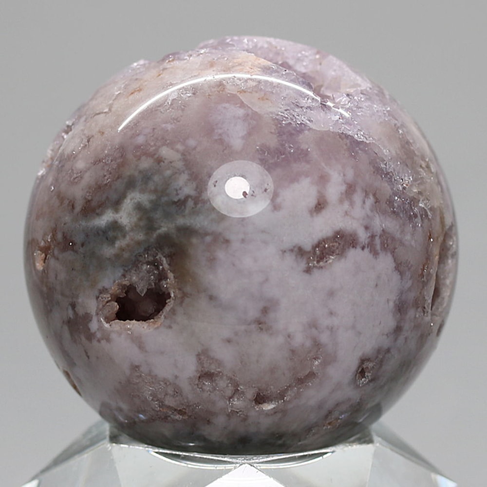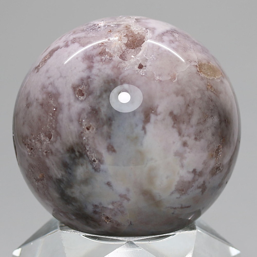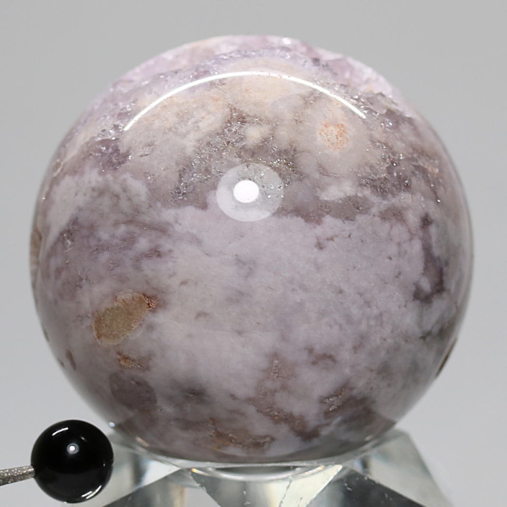 [高品質]マダガスカル産フラワーアゲート丸玉/ピンクアメジスト共生桜瑪瑙スフィア(直径約56.3mm・笑口ドゥルージータイプ)¥6,800クイックガイド送料