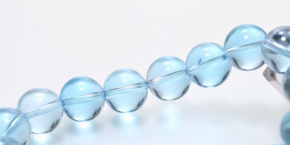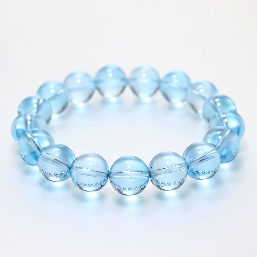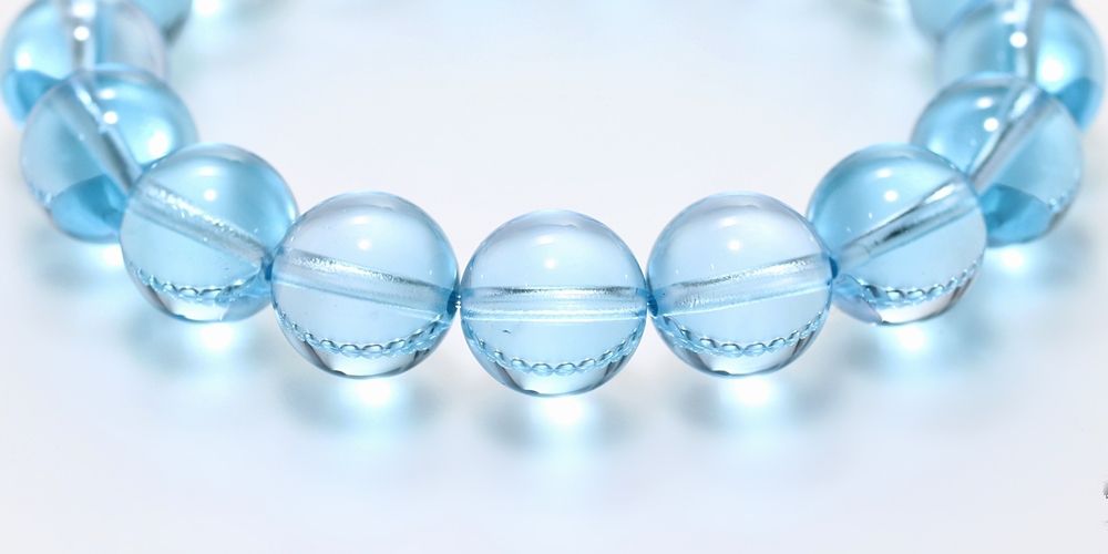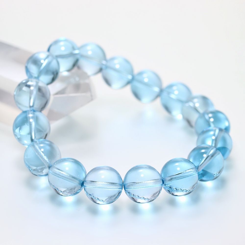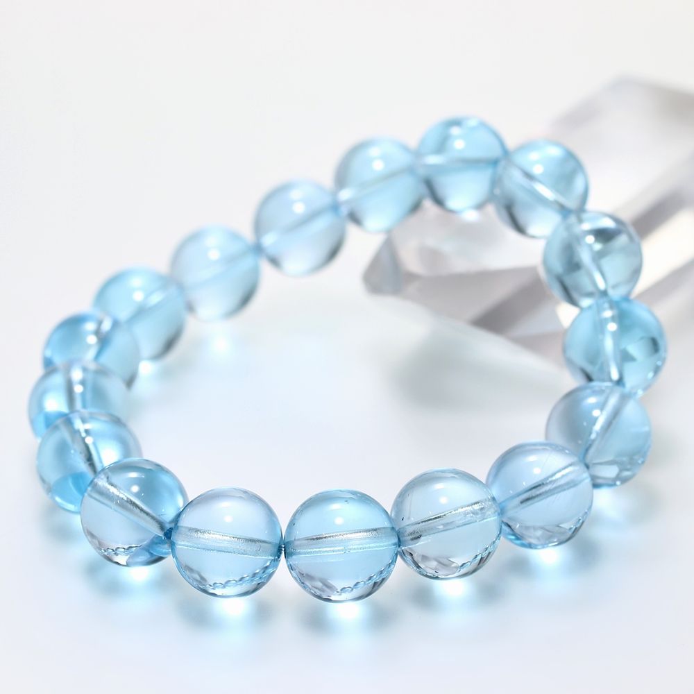 ご用意できたスイスブルートパーズブレスレットは、欠け凹みがほぼ無く、スカイブルーよりも濃く、ロンドンブルーよりも明るいブルー、透明度抜群の玉のみで組み上げた極上品質になります。