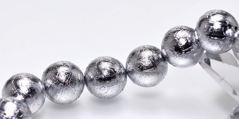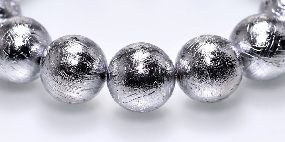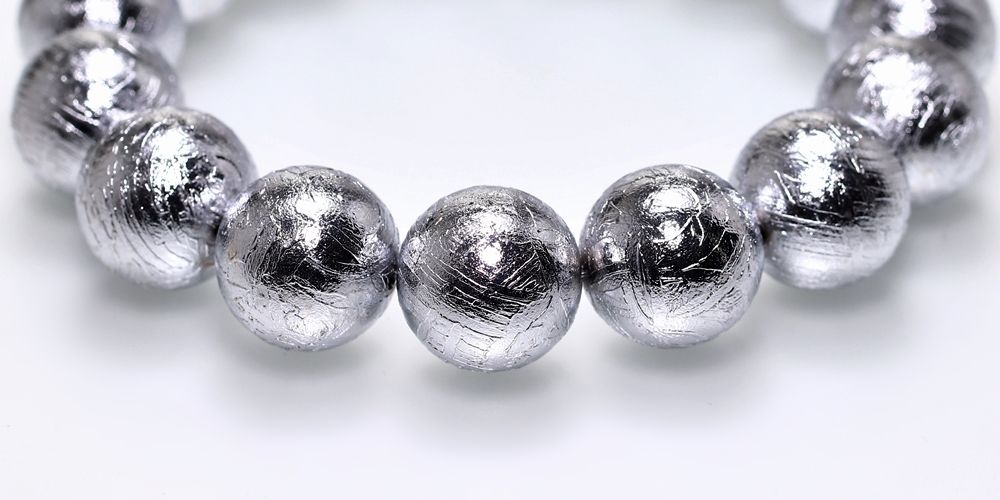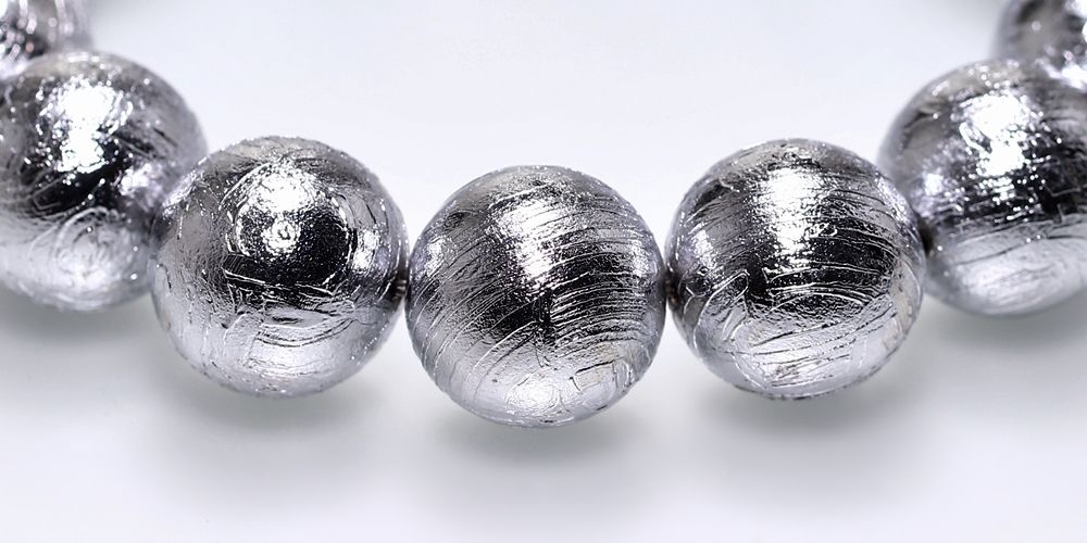 1836年にナミビアで発見されたギベオン隕石で構成された14ミリの希少大玉ブレスレットでございます。