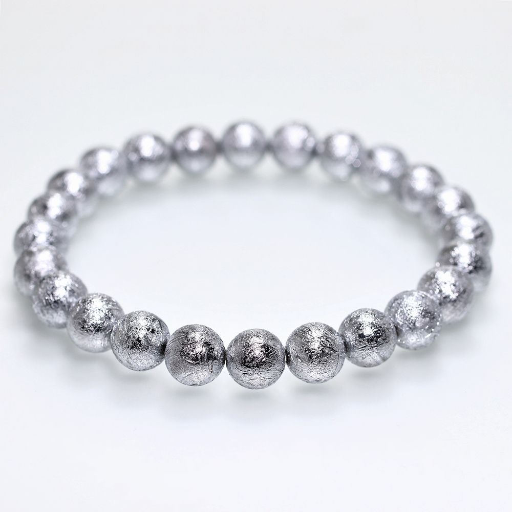 [ナミビア共和国産]ギベオン隕石ブレスレット(約8mm玉/シルバーカラー)