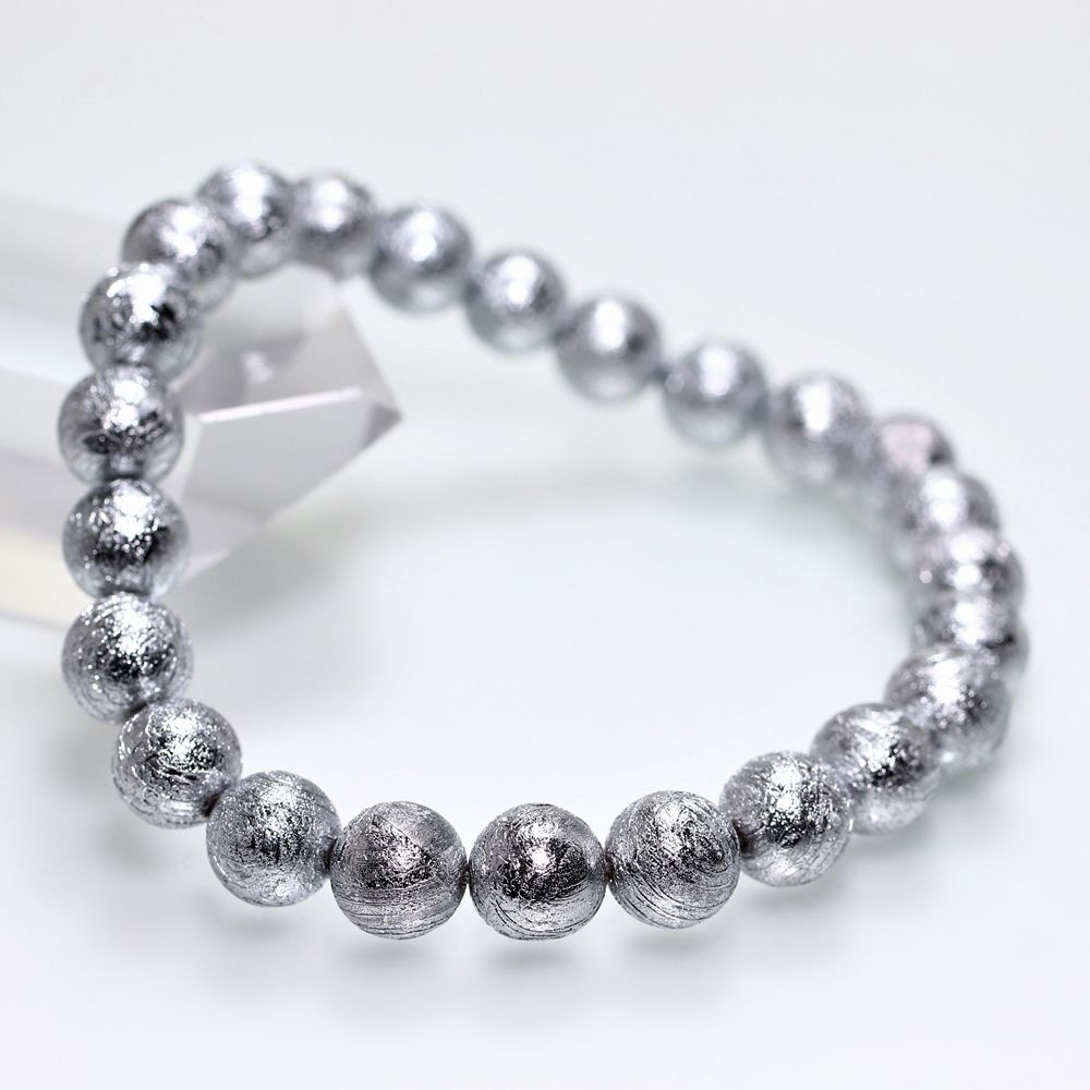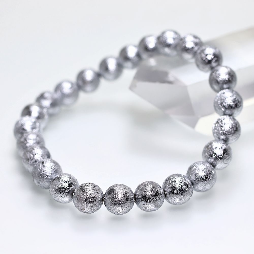 [ナミビア共和国産]ギベオン隕石ブレスレット(約8mm玉/シルバーカラー)¥59,200クイックガイド送料