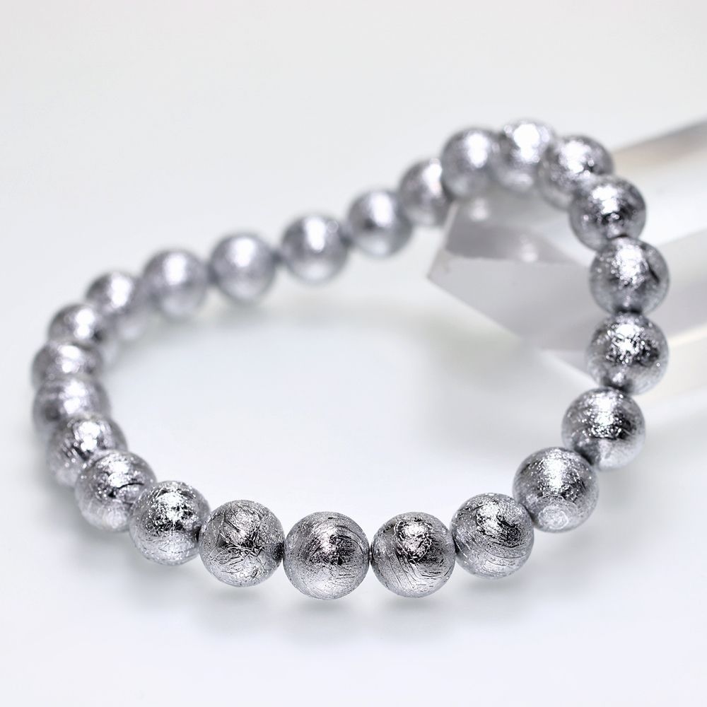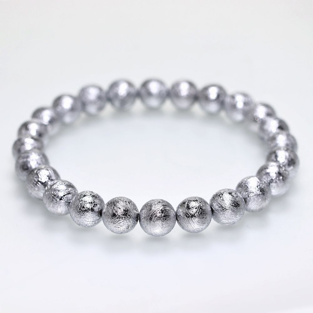 [ナミビア共和国産]ギベオン隕石ブレスレット(約8mm玉/シルバーカラー)