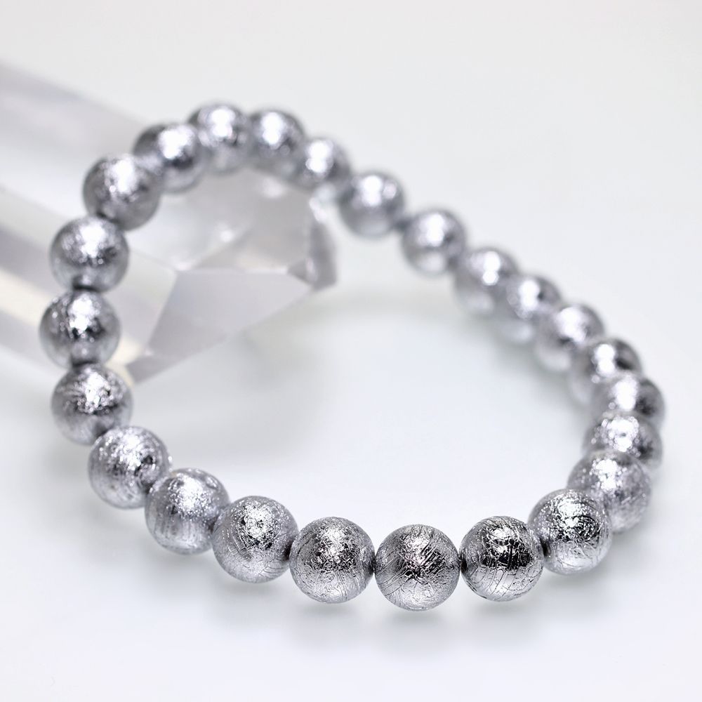 [ナミビア共和国産]ギベオン隕石ブレスレット(約8mm玉/シルバーカラー)¥58,300クイックガイド送料