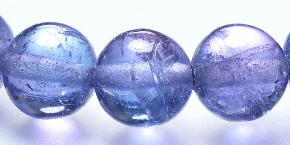 ブルーの天然石の中でも常に人気上位を位置づけるタンザナイトですが、透明度や色濃度が非常に繊細なため、統一感ある美しいブレスレットに仕上げるのが非常に難しい天然石です。