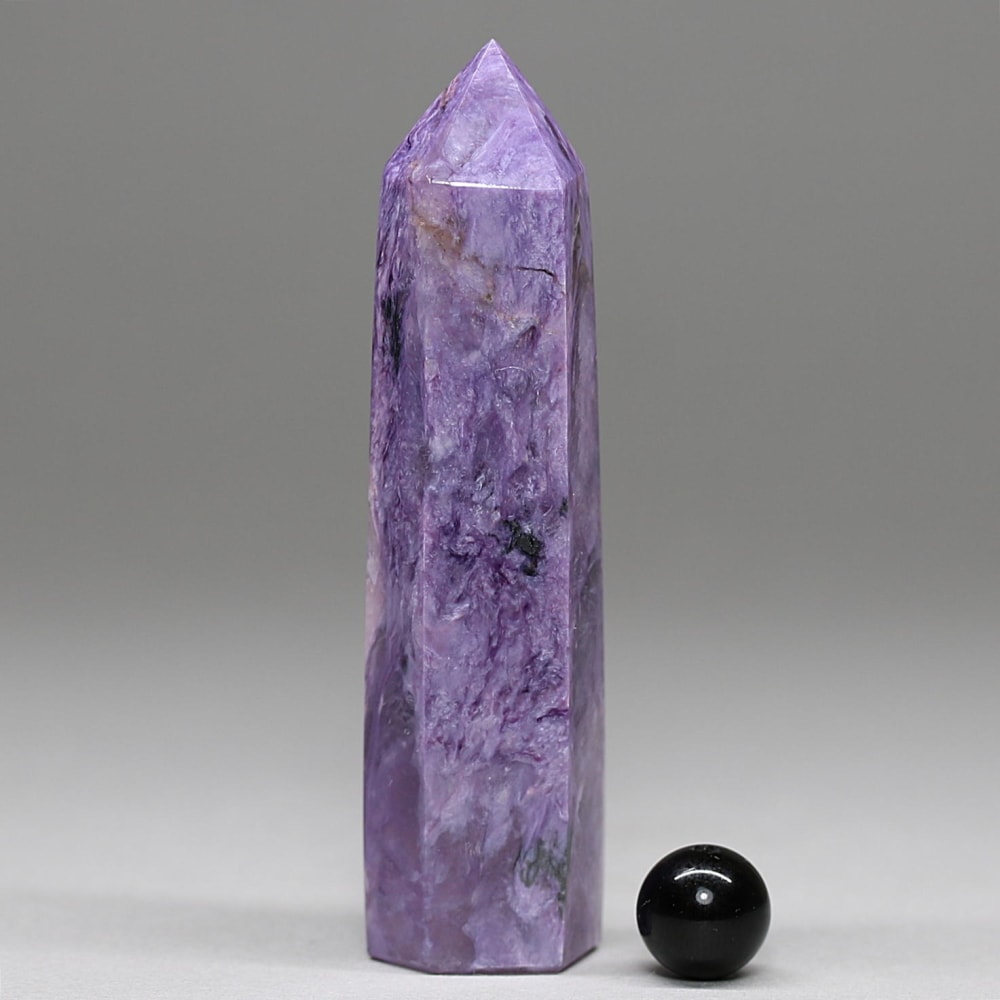 ポリッシュポイントは、ブレスレットビーズよりも使用する原石が大きくないと作れないため大変貴重です。高品質チャロアイトで作製したものであれば、さらに少なくなります。