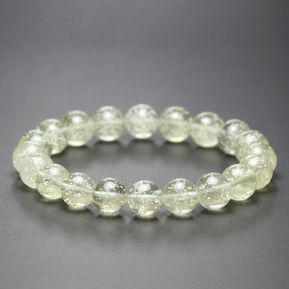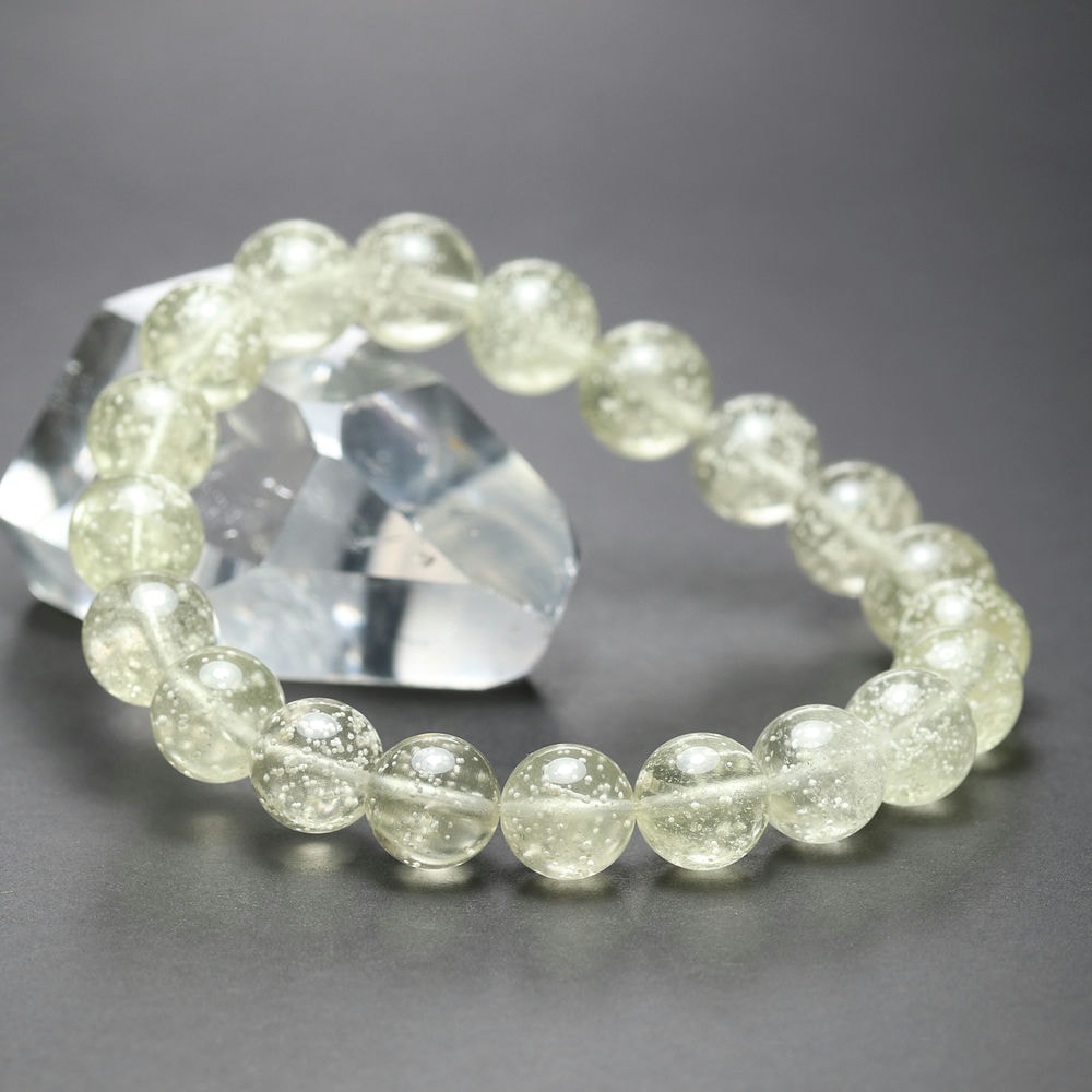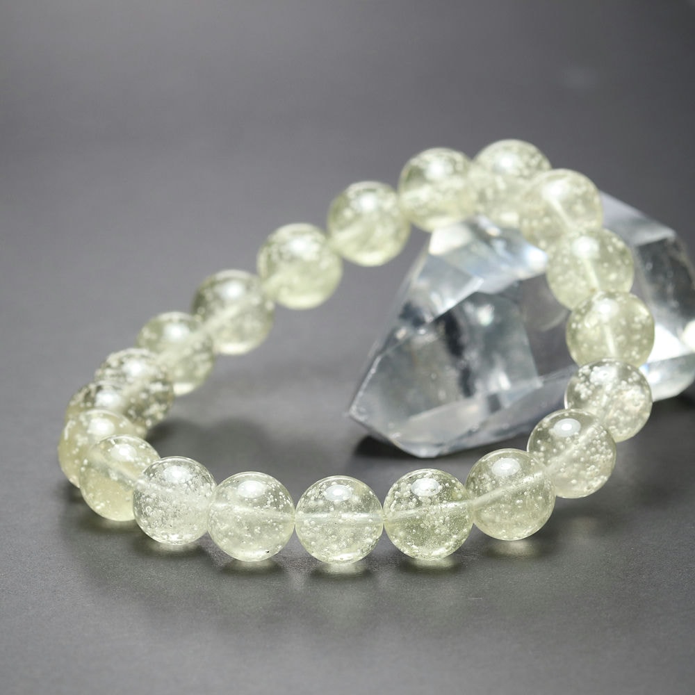 [高品質]全玉クリストバライト内包天然リビアングラスブレスレット(約10.5mm玉)