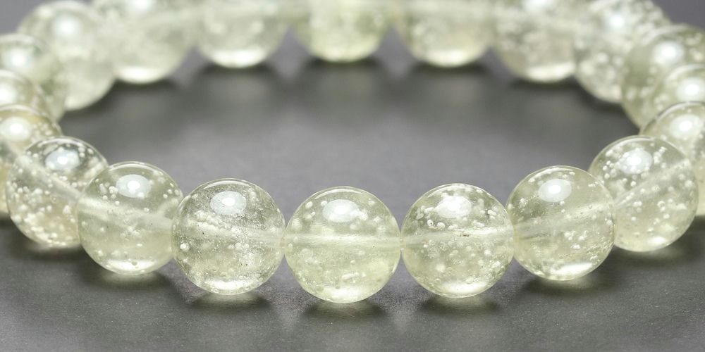 すべての玉にクリストバライト(方珪石)が内包された天然リビアングラスブレスレットでございます。