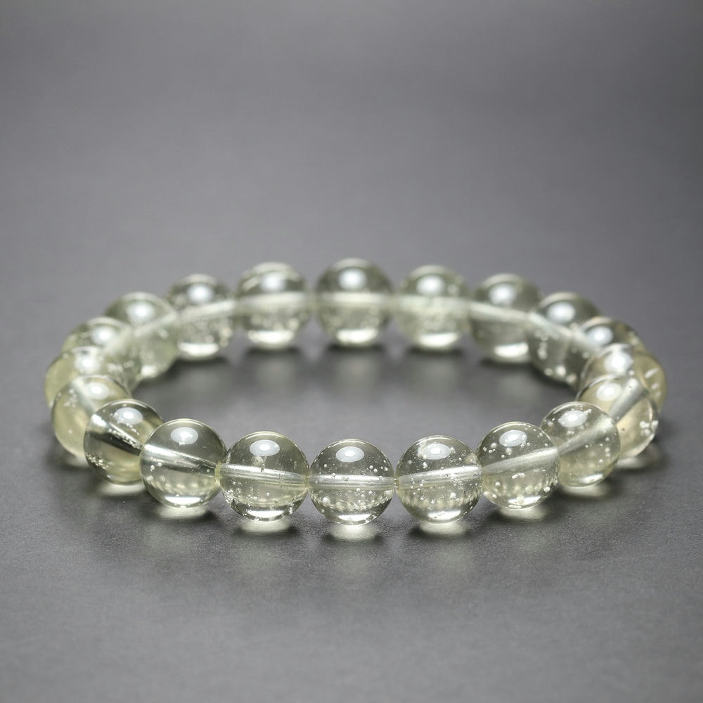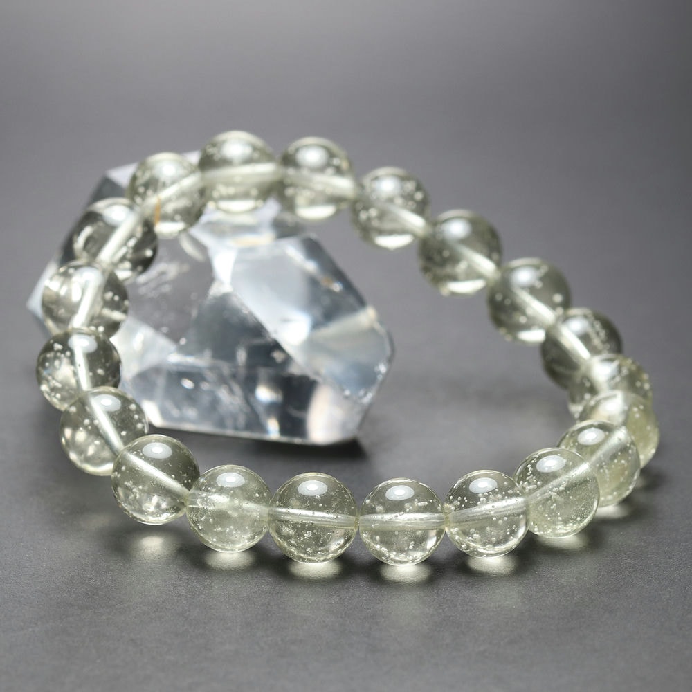 [高品質++]全玉クリストバライト内包天然リビアングラスブレスレット(約9.5mm玉)
