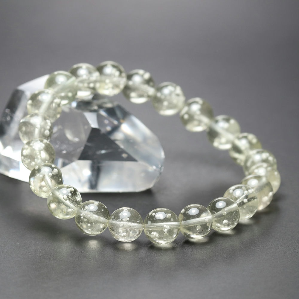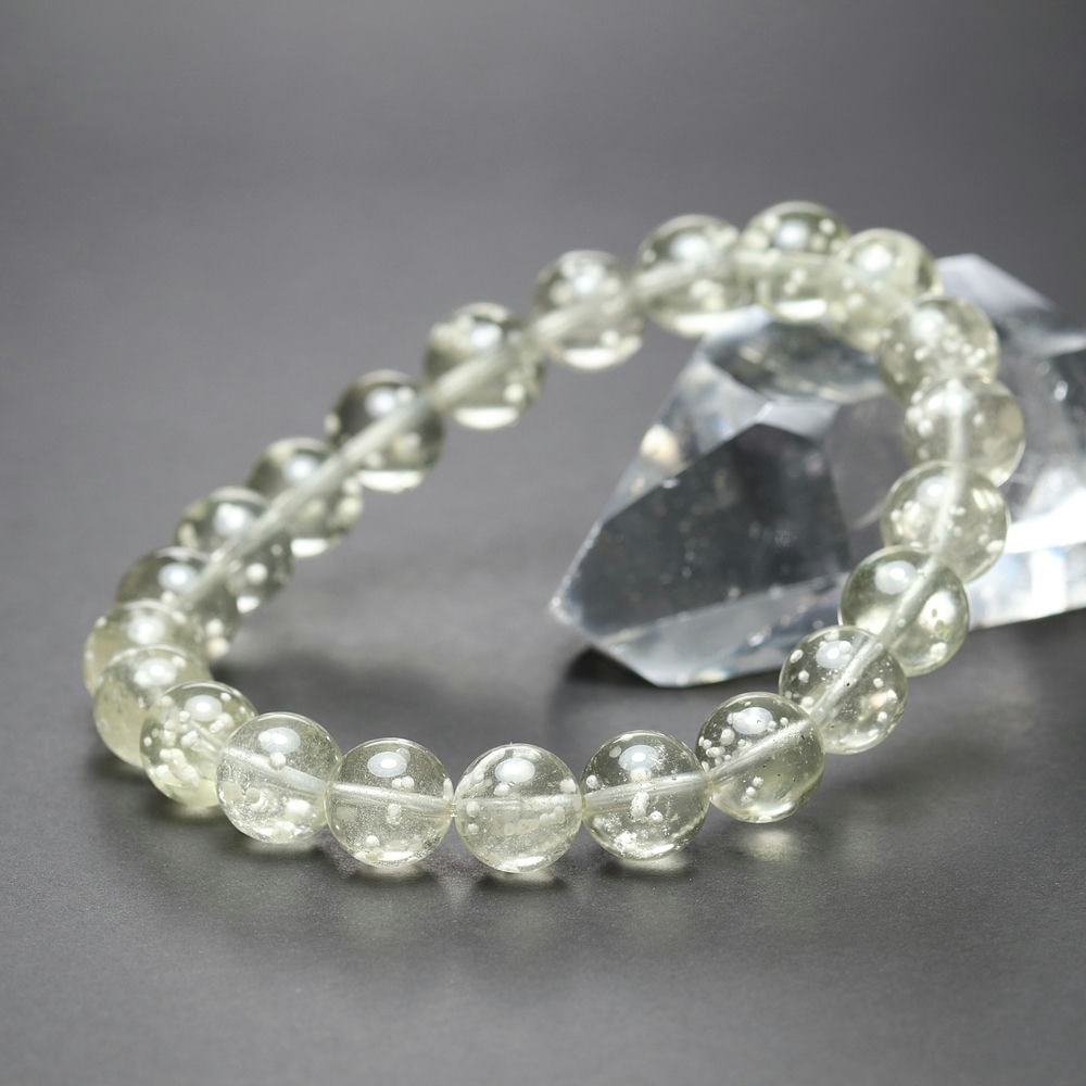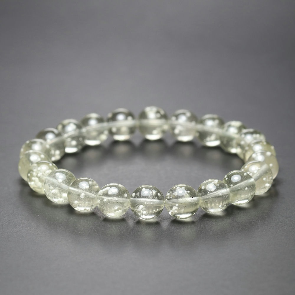 [高品質++]全玉クリストバライト内包天然リビアングラスブレスレット(約9mm玉)