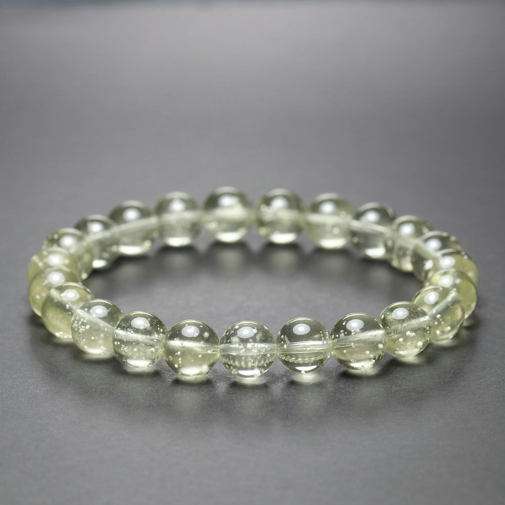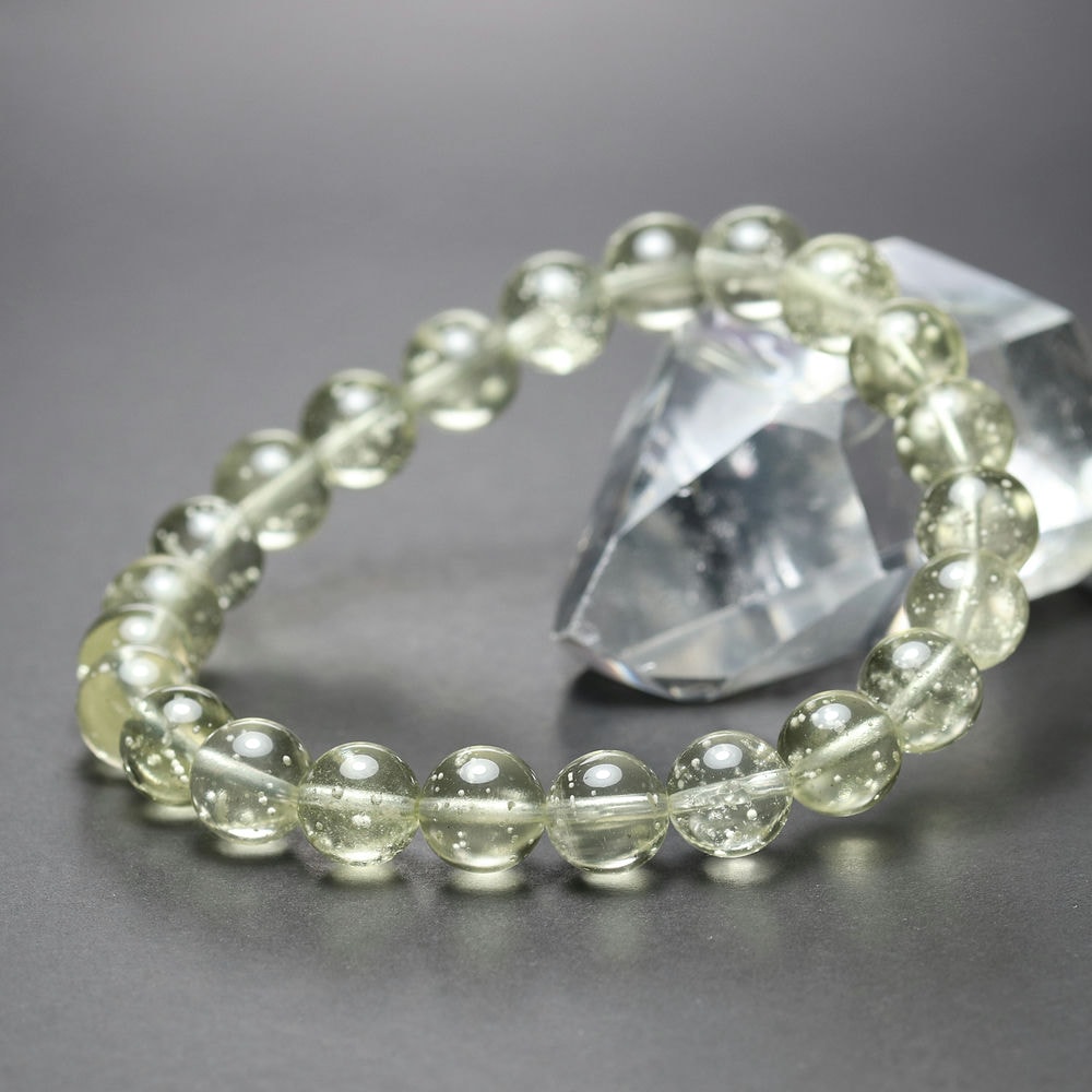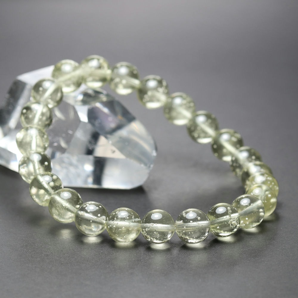 [トップクォリティ]全玉クリストバライト内包天然リビアングラスブレスレット(約8mm玉)