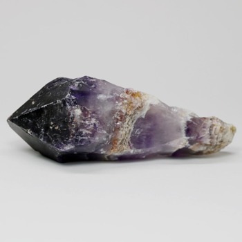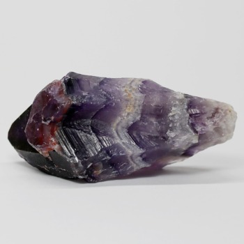 アメジストの紫色と白色の石英(クォーツ)が織りなす層状の模様が、フランス語で「山型」を意味する「シェブロン」の名にふさわしい、繊細で美しいV字型の縞模様(バンデッドパターン)を形成した、シェブロンアメジストをご用意しました。
