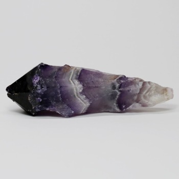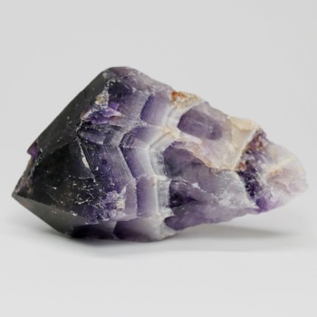 アメジストの紫色と白色の石英(クォーツ)が織りなす層状の模様が、フランス語で「山型」を意味する「シェブロン」の名にふさわしい、繊細で美しいV字型の縞模様(バンデッドパターン)を形成した、シェブロンアメジストをご用意しました。