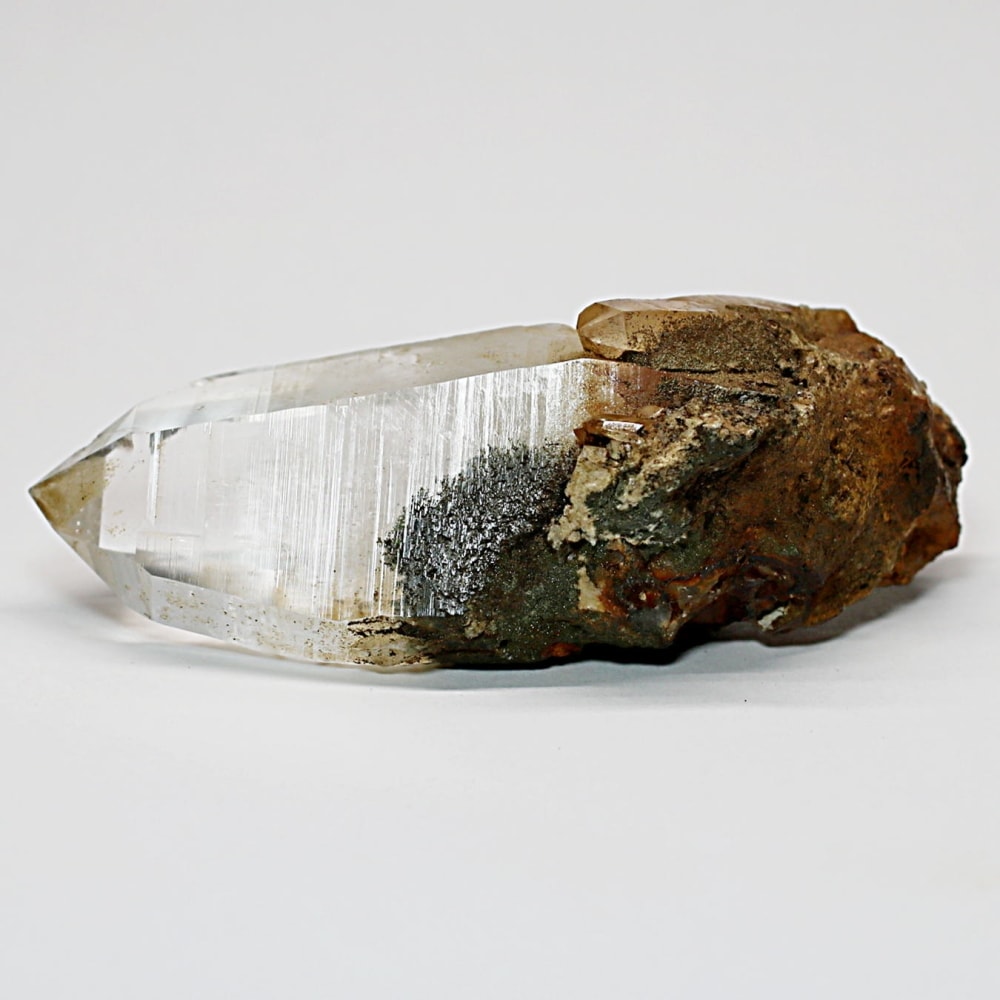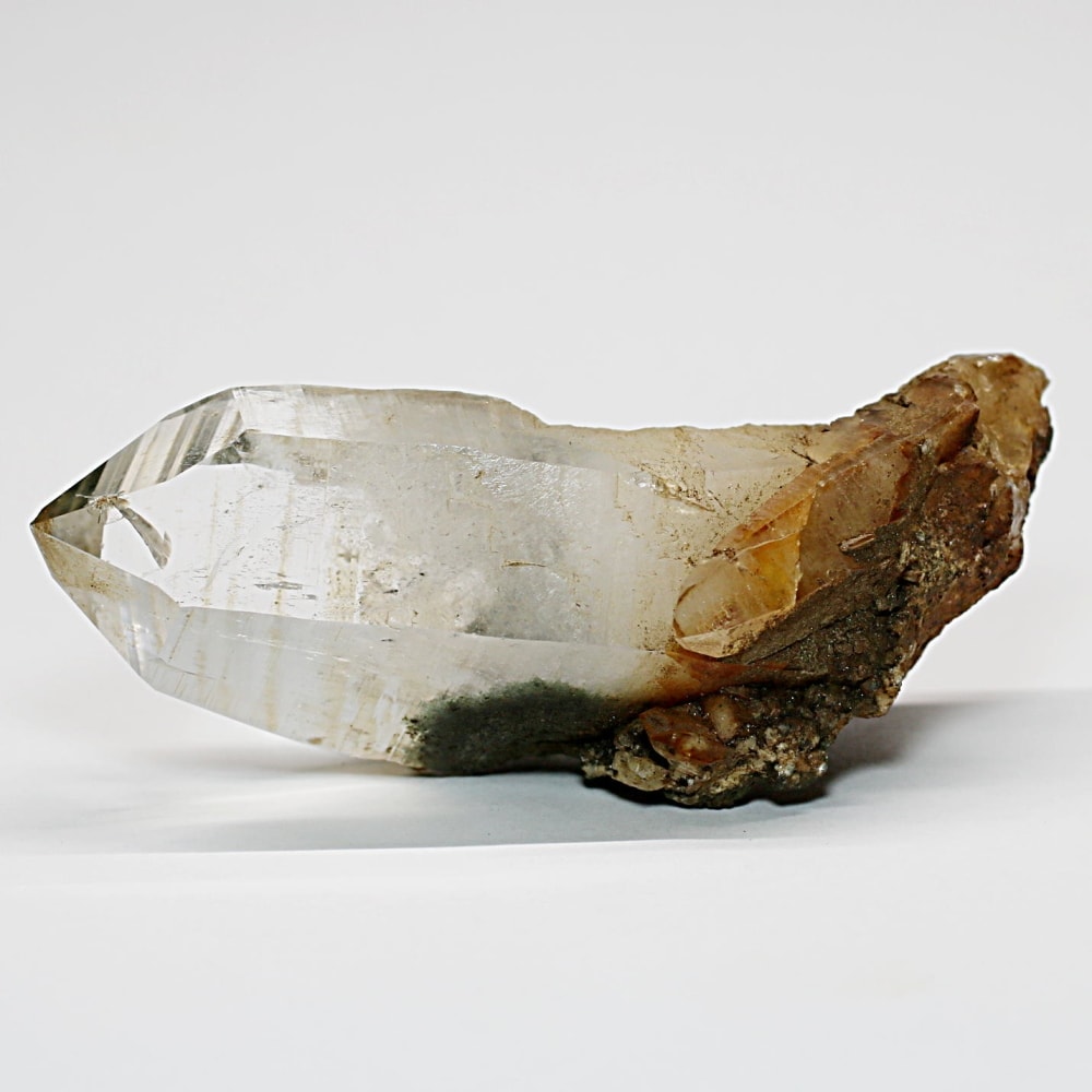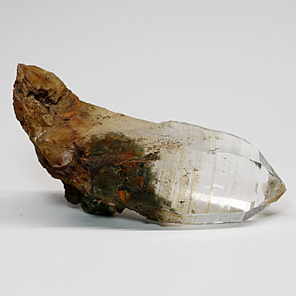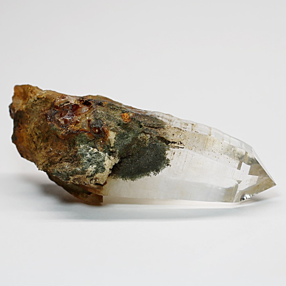 ガネッシュヒマール/ヒンドゥン産ヒマラヤ水晶原石ナチュラルポイント(全長84.8mm/クローライトとリモナイトが共存)