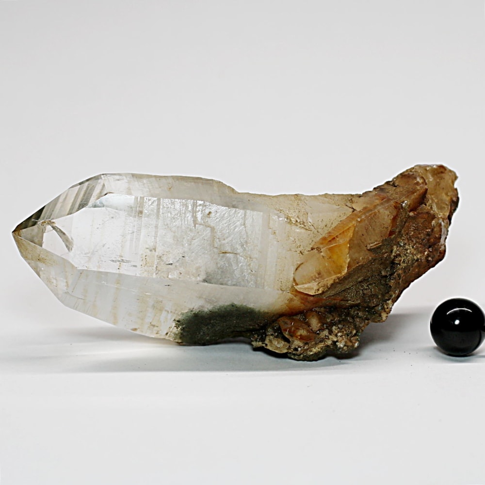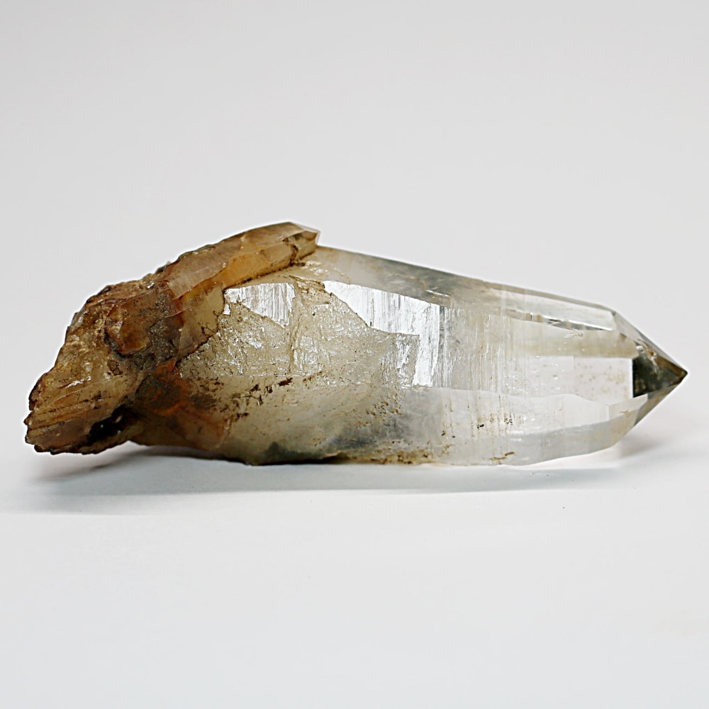 ガネッシュヒマール産ヒマラヤ水晶と言えば緑色のクローライトに覆われた先細りの結晶が印象的ですが、こちらのヒンドゥン地区で採掘されたヒマラヤ水晶は主にリモナイトの影響を受けてイエローとなった魅力的な個性を備えています。