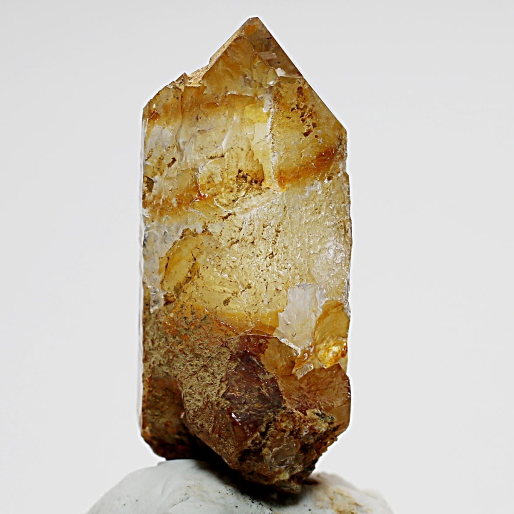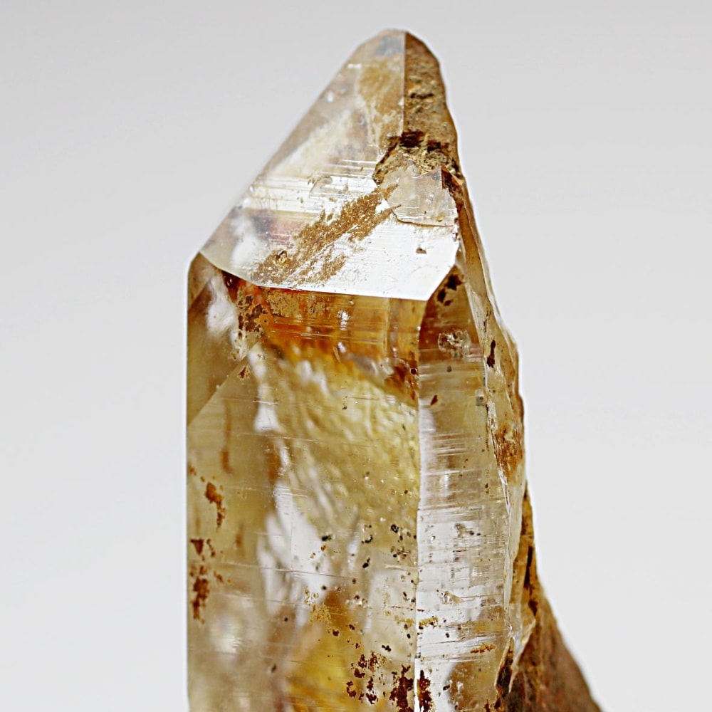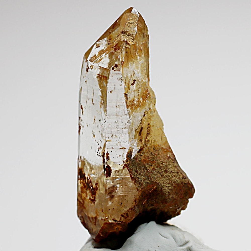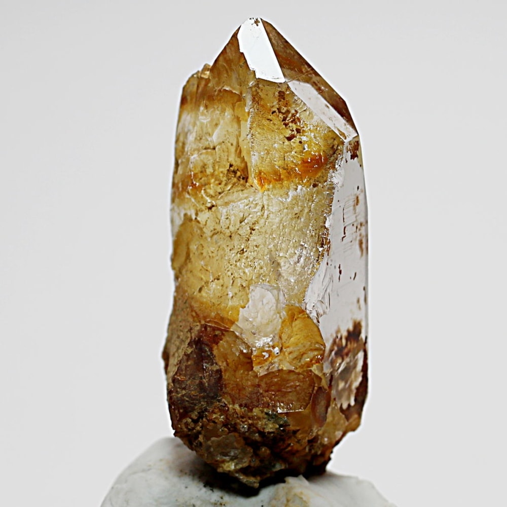 ガネッシュヒマール産ヒマラヤ水晶と言えば緑色のクローライトに覆われた先細りの結晶が印象的ですが、こちらのヒンドゥン地区で採掘されたヒマラヤ水晶は主にリモナイトの影響を受けて、“イエローゴールドに輝くヒマラヤ水晶” となっております。