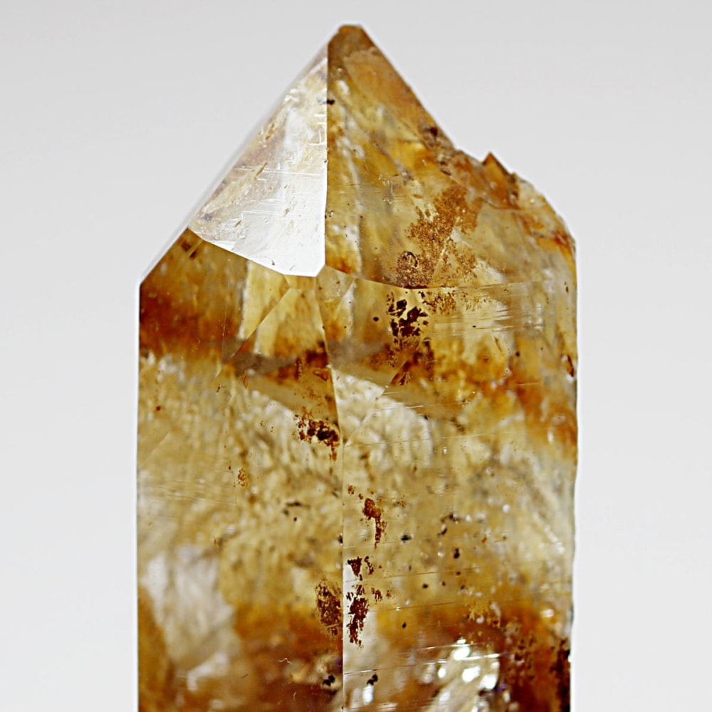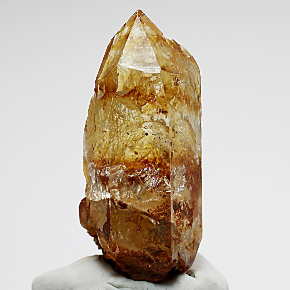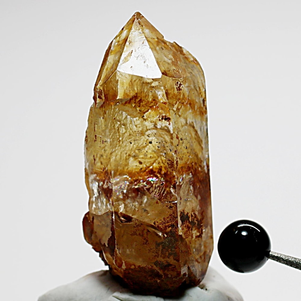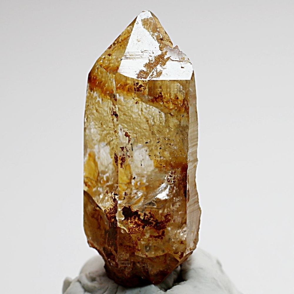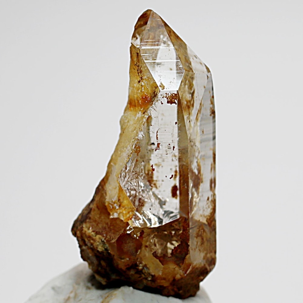 ガネッシュヒマール産ヒマラヤ水晶と言えば緑色のクローライトに覆われた先細りの結晶が印象的ですが、こちらのヒンドゥン地区で採掘されたヒマラヤ水晶は主にリモナイトの影響を受けて、“イエローゴールドに輝くヒマラヤ水晶” となっております。
