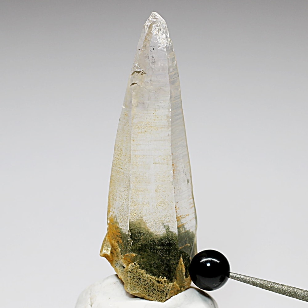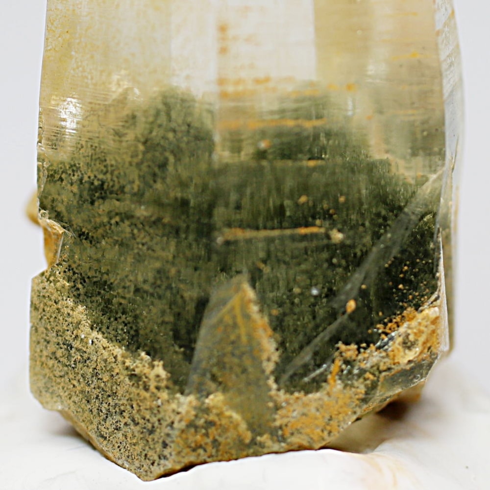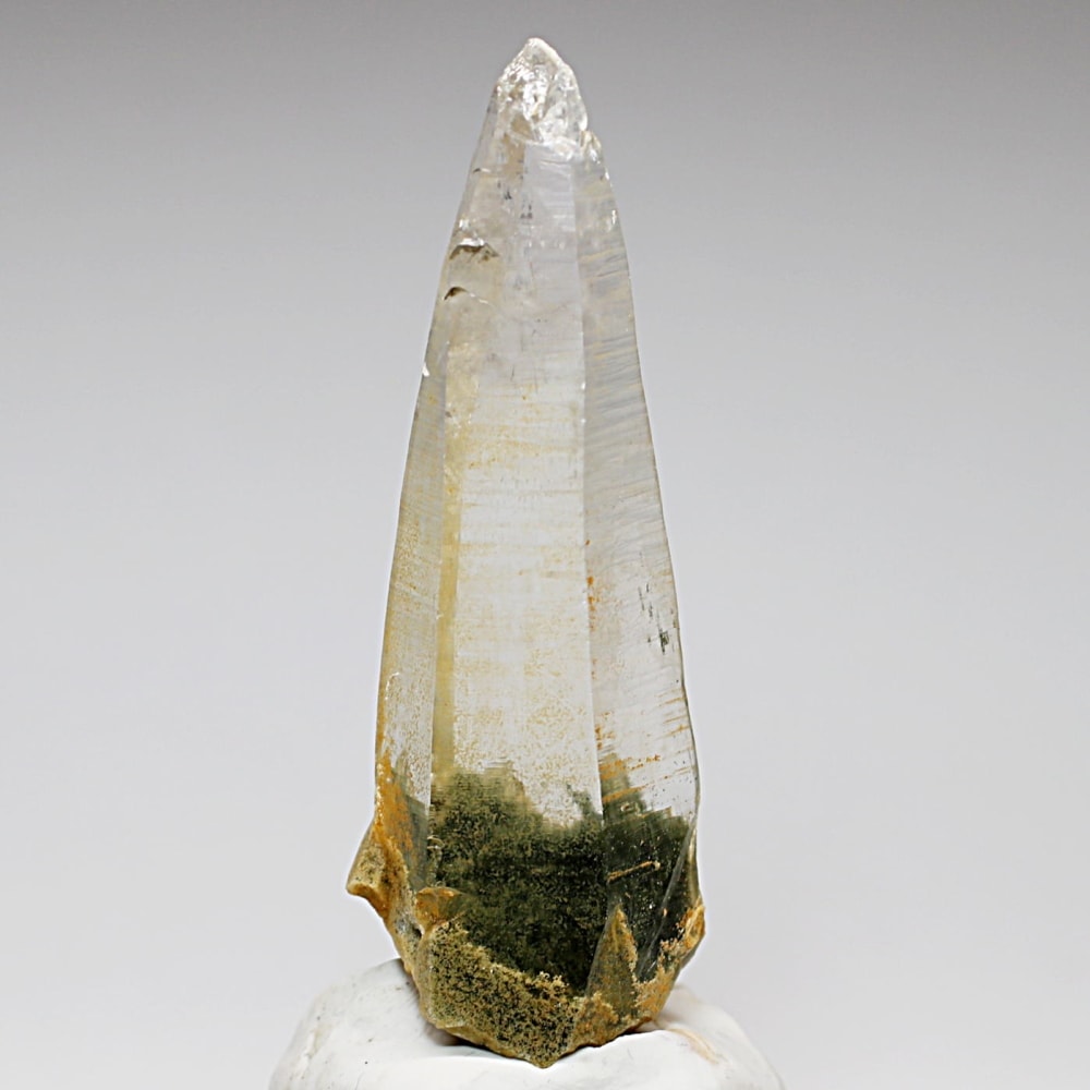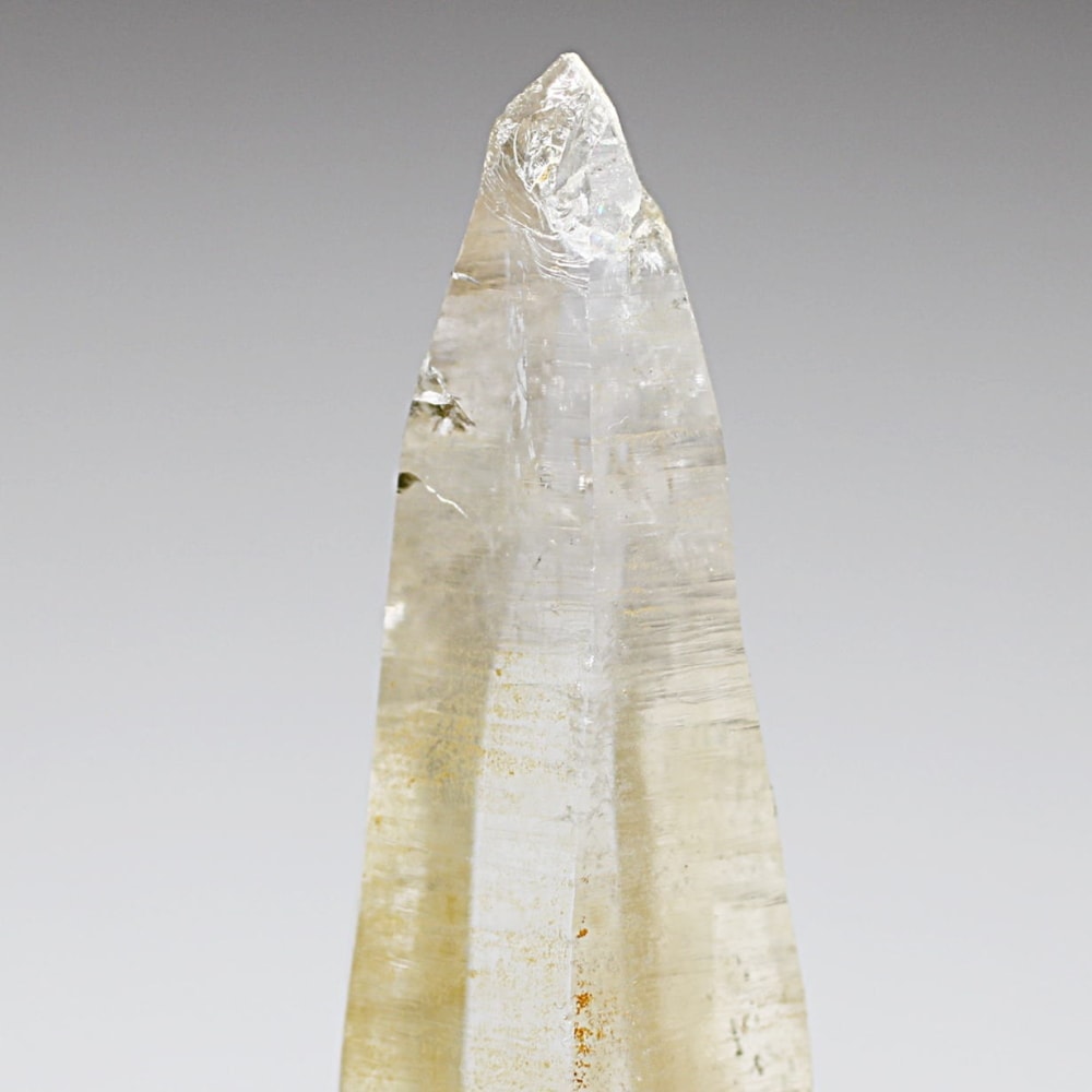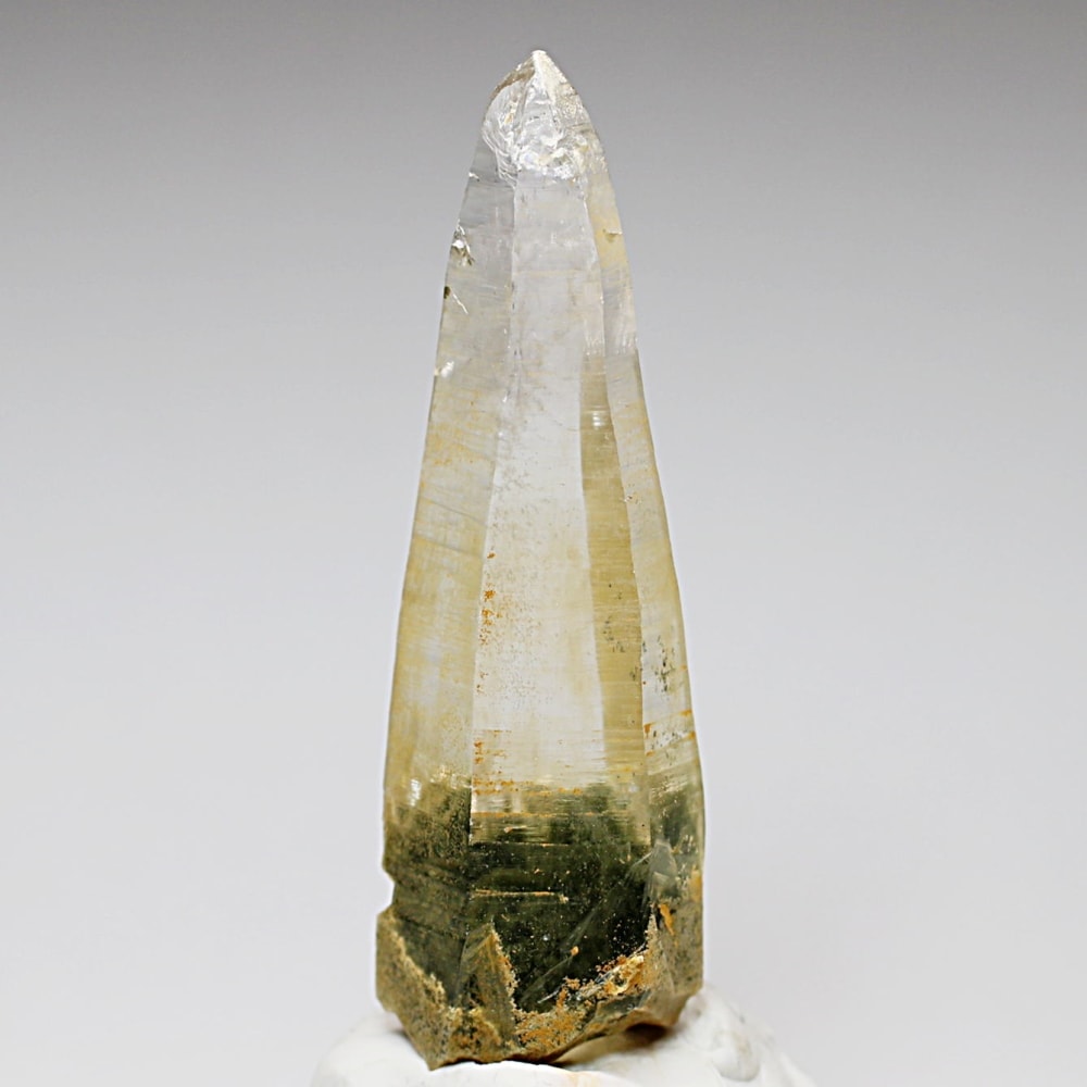ガネッシュヒマール産ヒマラヤ水晶と言えば緑色のクローライトに覆われた先細りの結晶が印象的ですが、こちらのヒンドゥン地区で採掘されたヒマラヤ水晶は主にリモナイトの影響を受けてイエローとなった魅力的な個性を備えています。