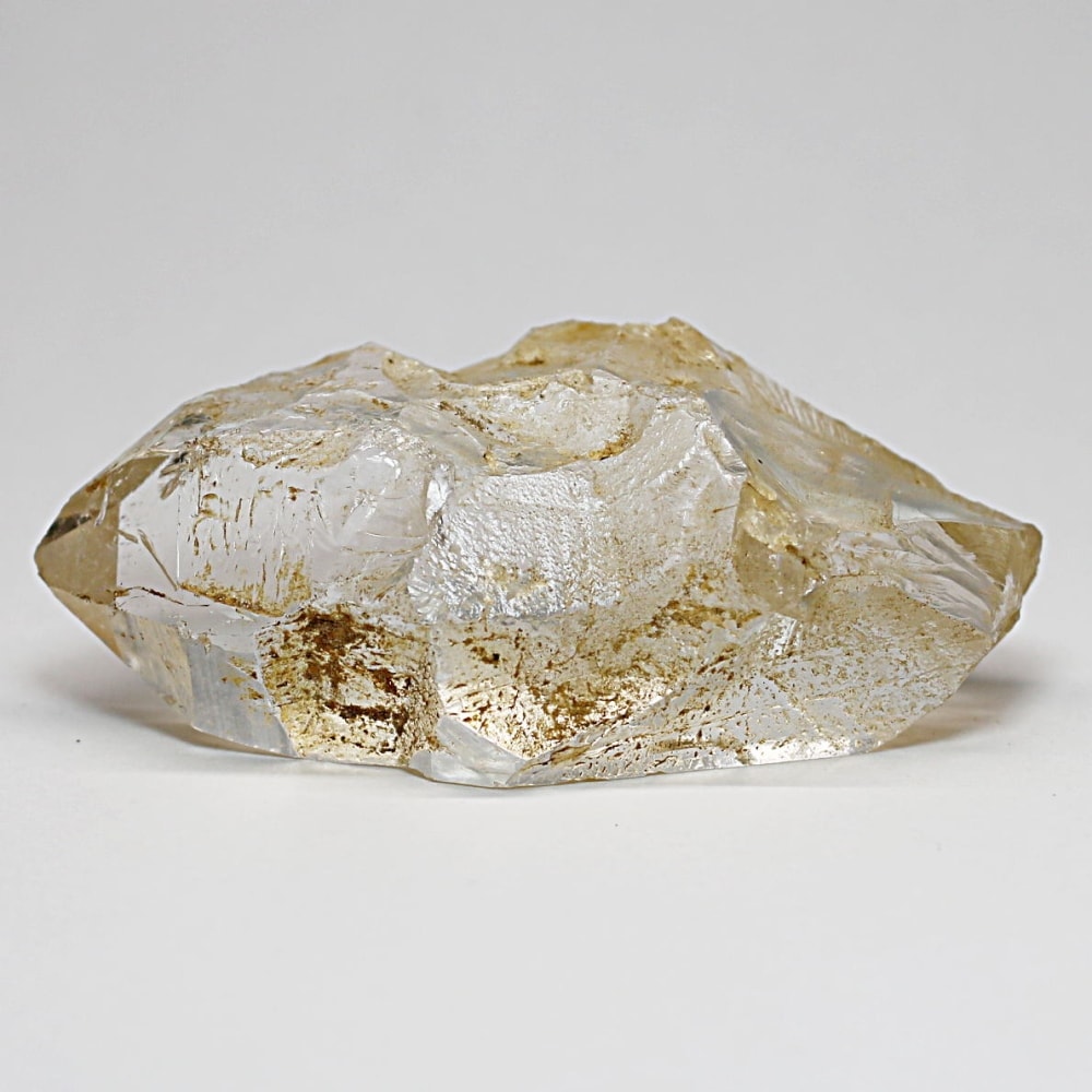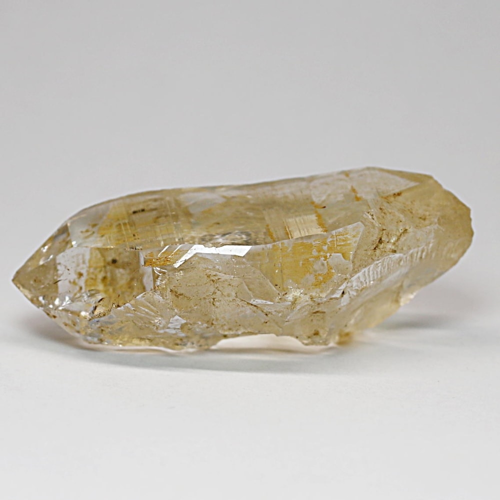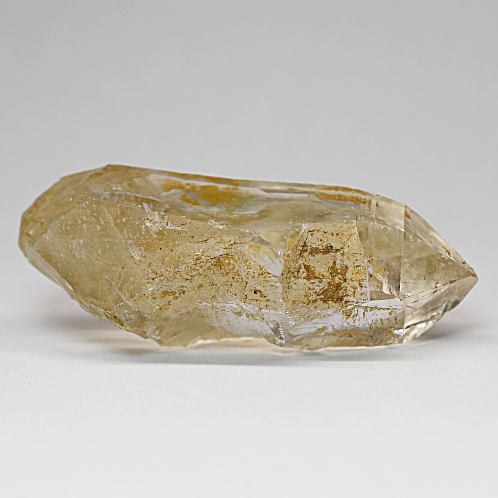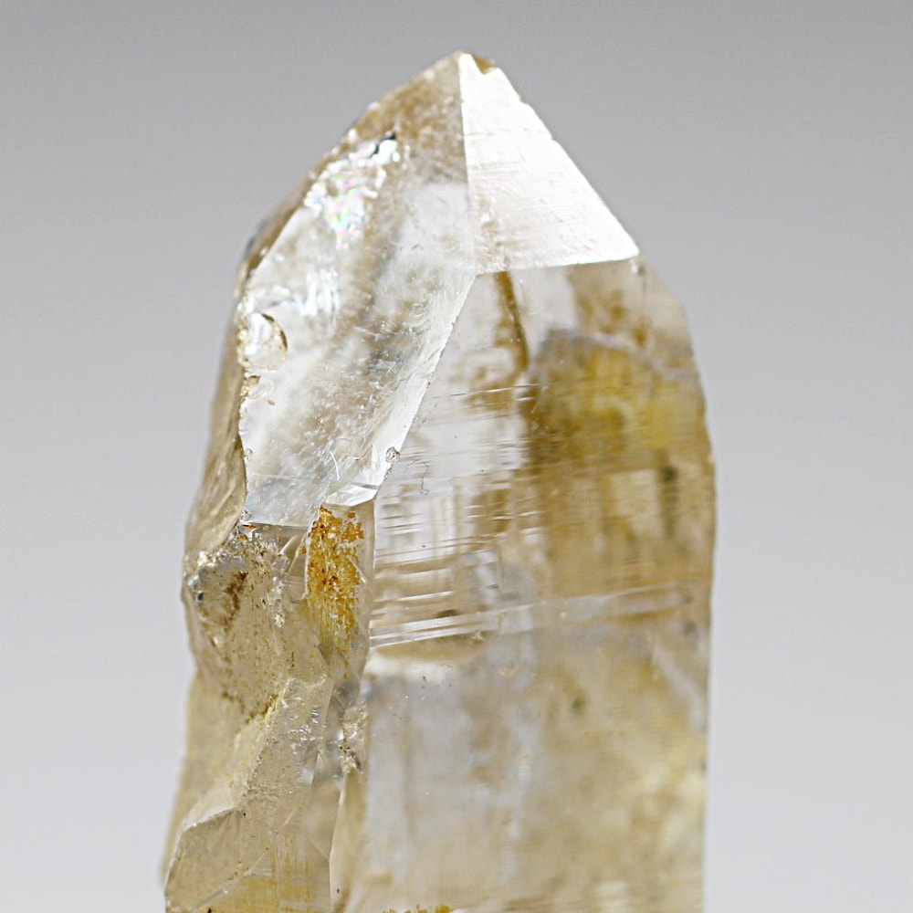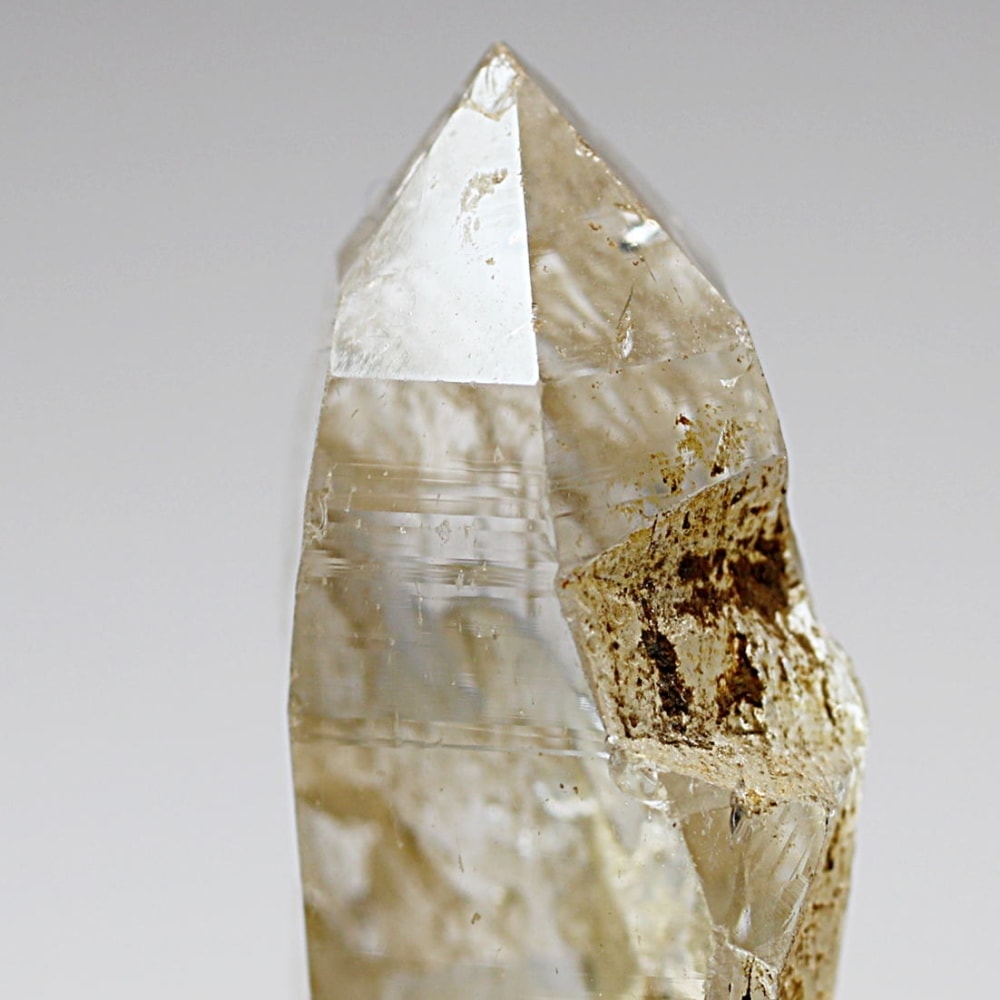 ガネッシュヒマール産ヒマラヤ水晶と言えば緑色のクローライトに覆われた先細りの結晶が印象的ですが、こちらのヒンドゥン地区で採掘されたヒマラヤ水晶は主にリモナイトの影響を受けてイエローとなっている箇所もあり、魅力的な個性を備えています。