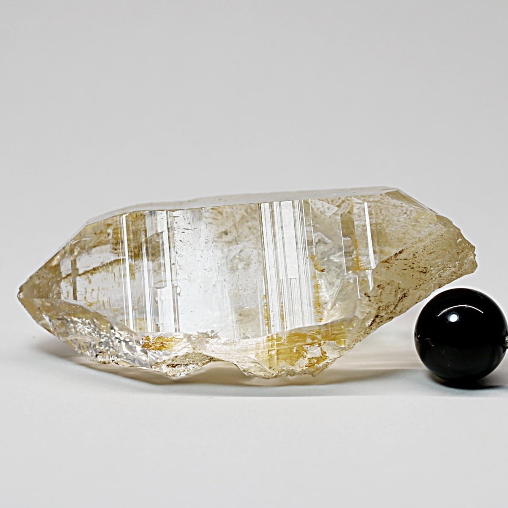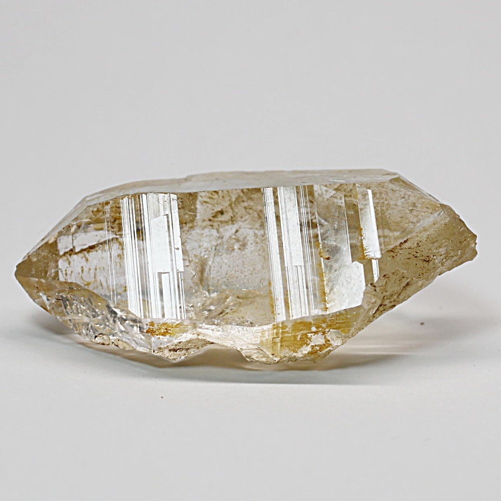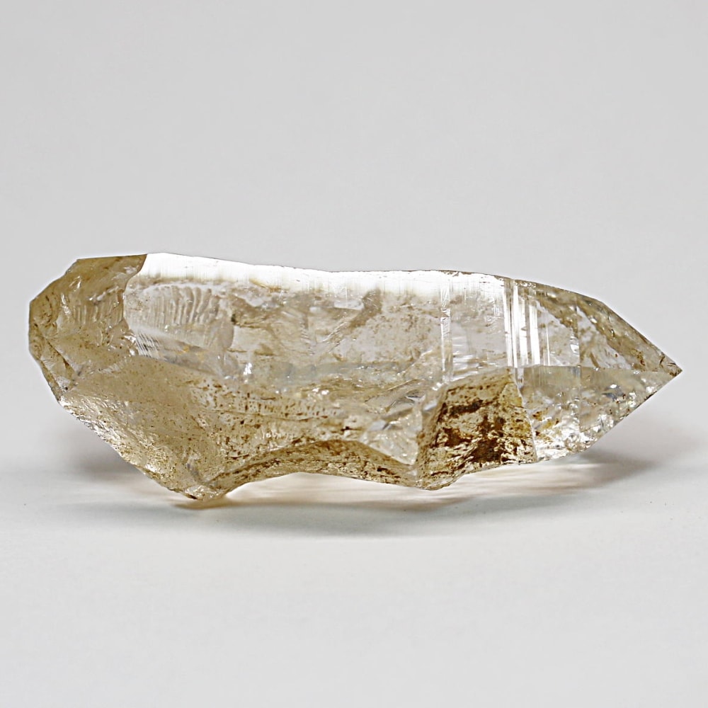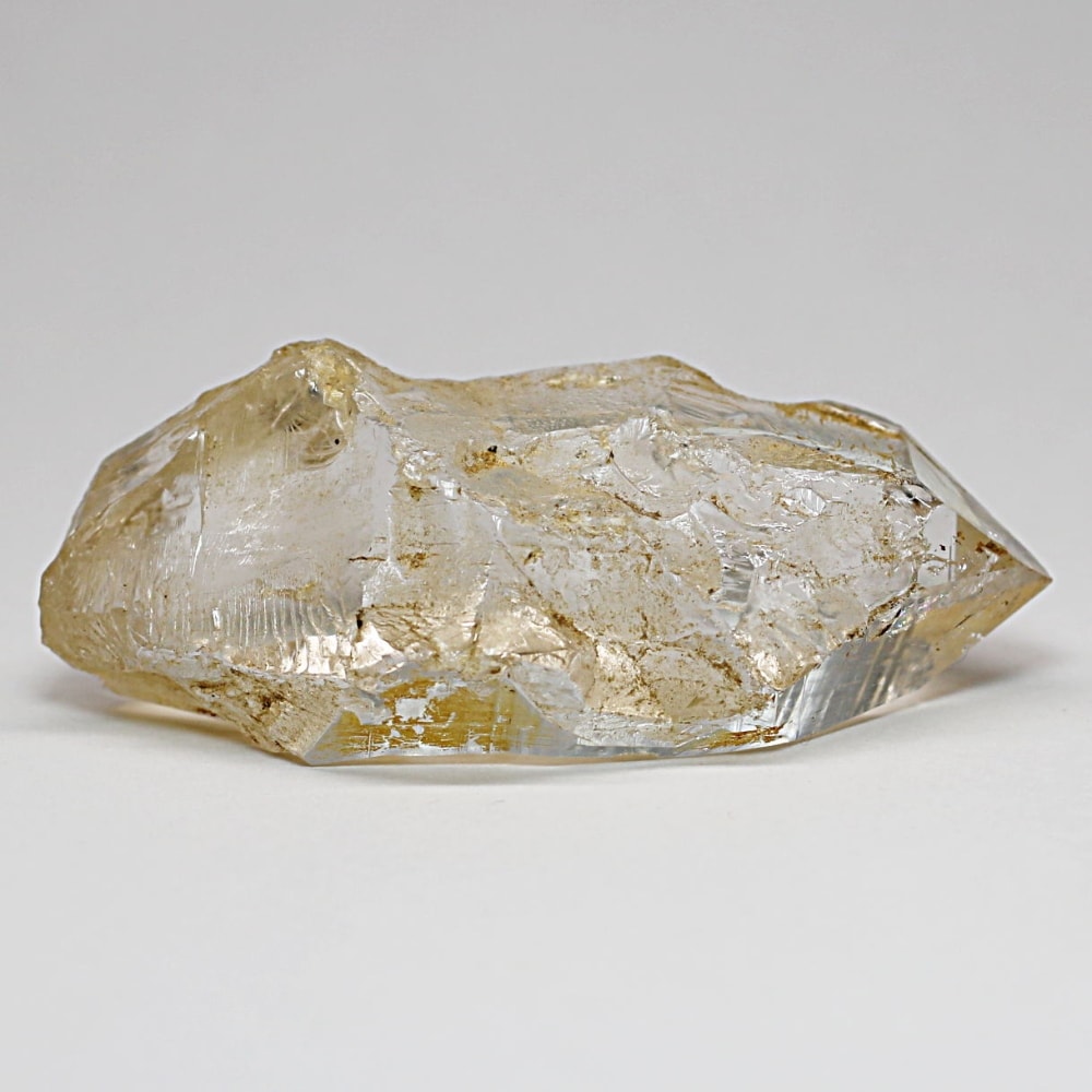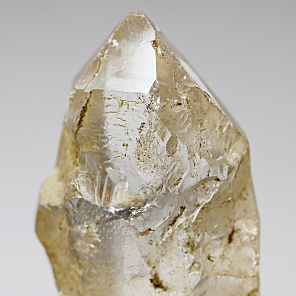 ガネッシュヒマール産ヒマラヤ水晶と言えば緑色のクローライトに覆われた先細りの結晶が印象的ですが、こちらのヒンドゥン地区で採掘されたヒマラヤ水晶は主にリモナイトの影響を受けてイエローとなっている箇所もあり、魅力的な個性を備えています。