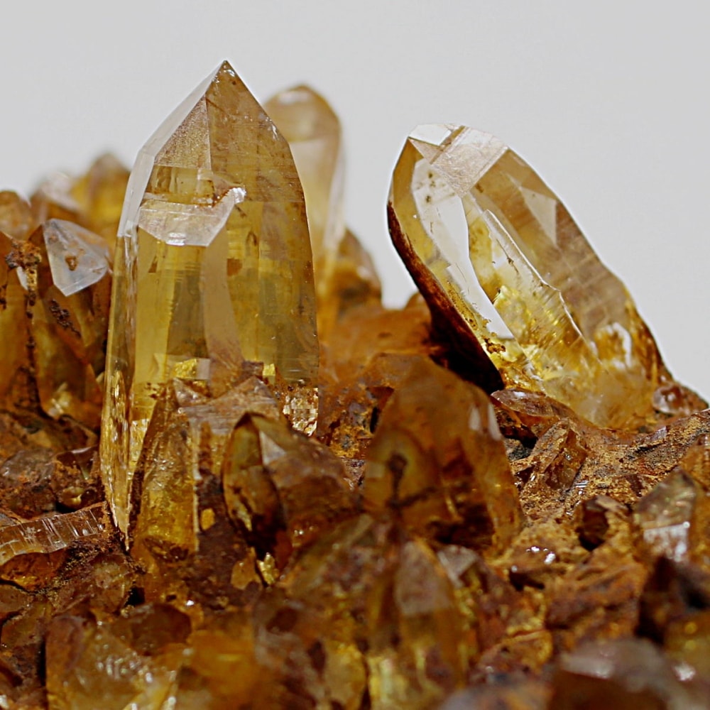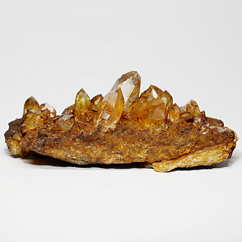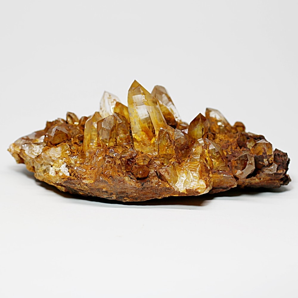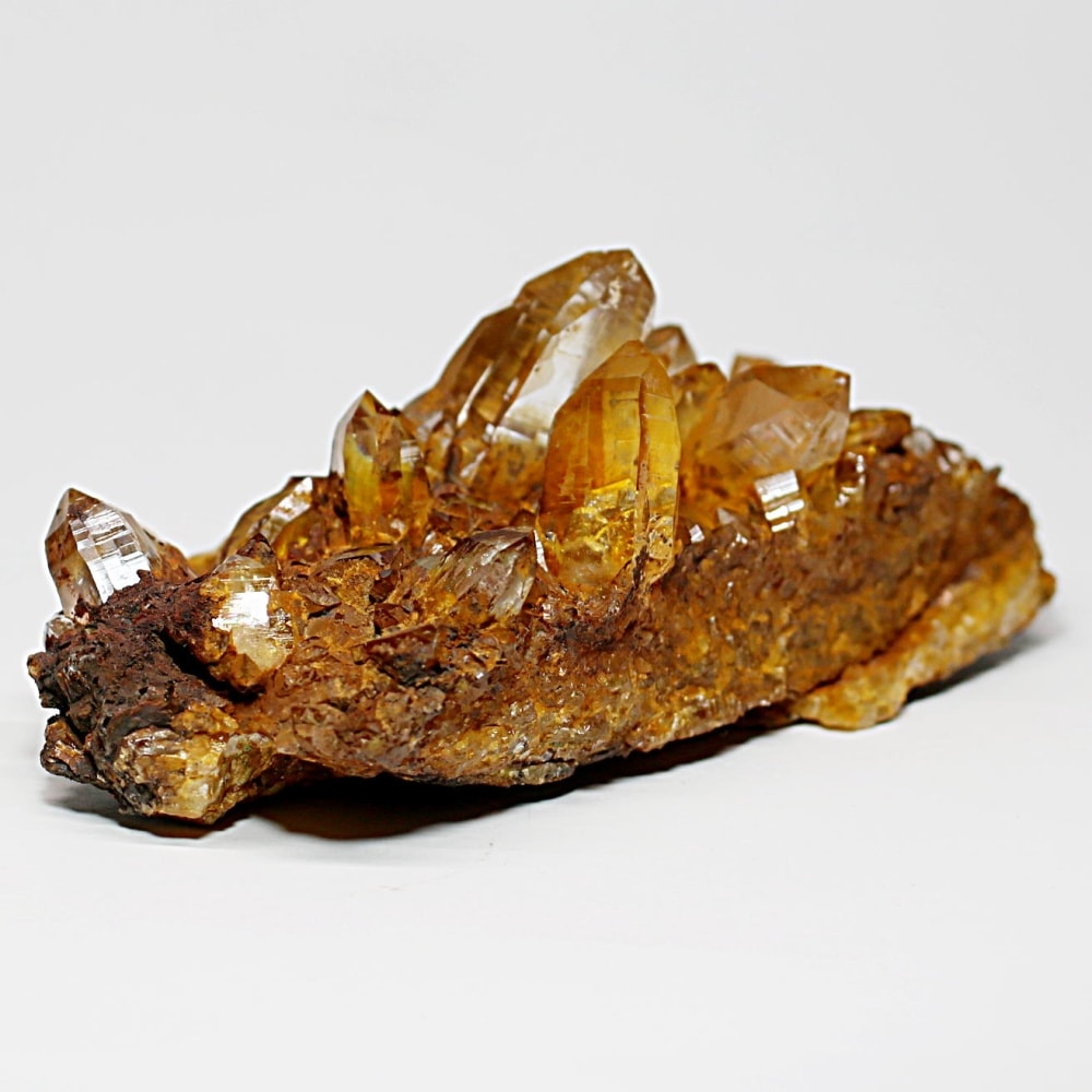 ガネッシュヒマール産ヒマラヤ水晶と言えば緑色のクローライトに覆われた先細りの結晶が印象的ですが、こちらのヒンドゥン地区で採掘されたヒマラヤ水晶は主にリモナイトの影響を受けて、“イエローゴールドに輝くヒマラヤ水晶” となっております。