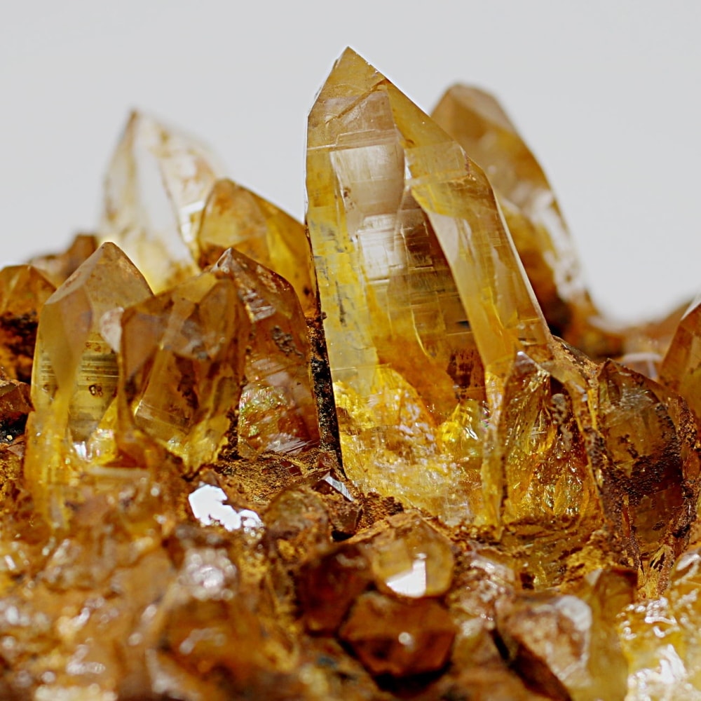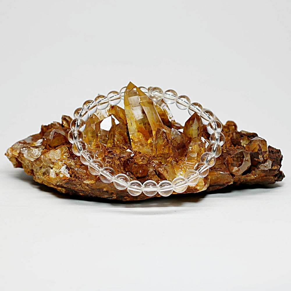美しいリモナイトの黄色と透明水晶のコントラスト