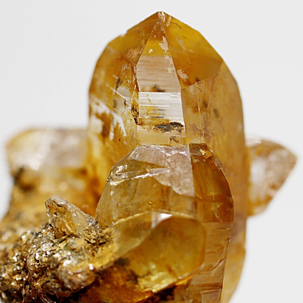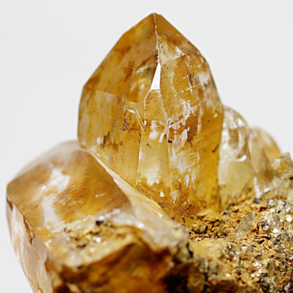 ガネッシュヒマール産ヒマラヤ水晶と言えば緑色のクローライトに覆われた先細りの結晶が印象的ですが、こちらのヒンドゥン地区で採掘されたヒマラヤ水晶は主にリモナイトの影響を受けて、“イエローゴールドに輝くヒマラヤ水晶” となっております。