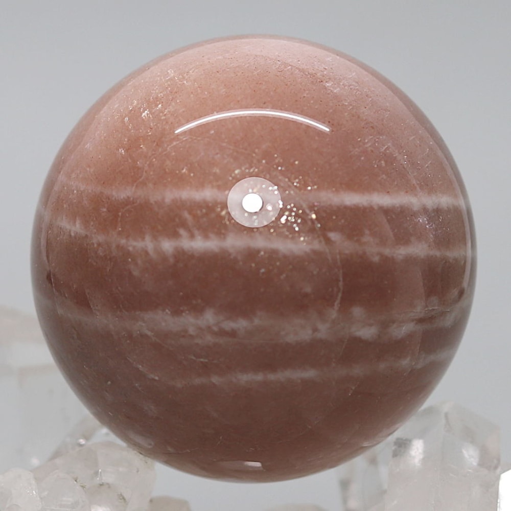 ホワイトシラー輝くオレンジブラウンベースの深みあるムーンストーンスフィア