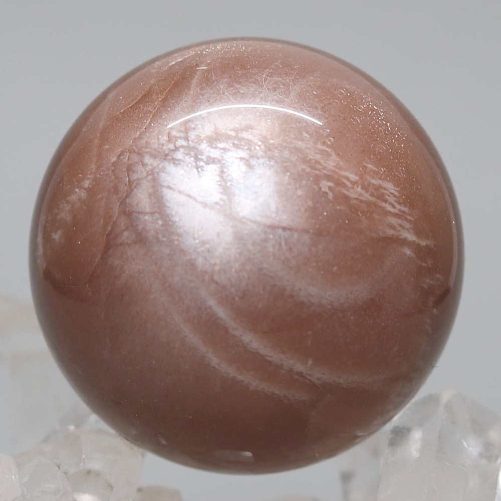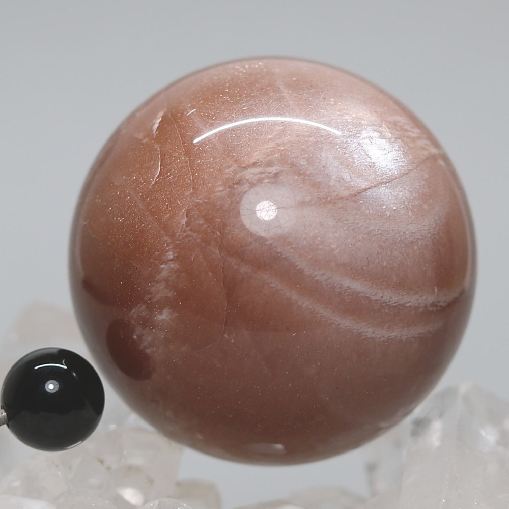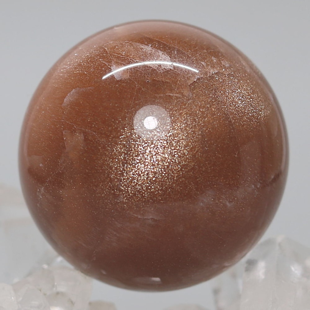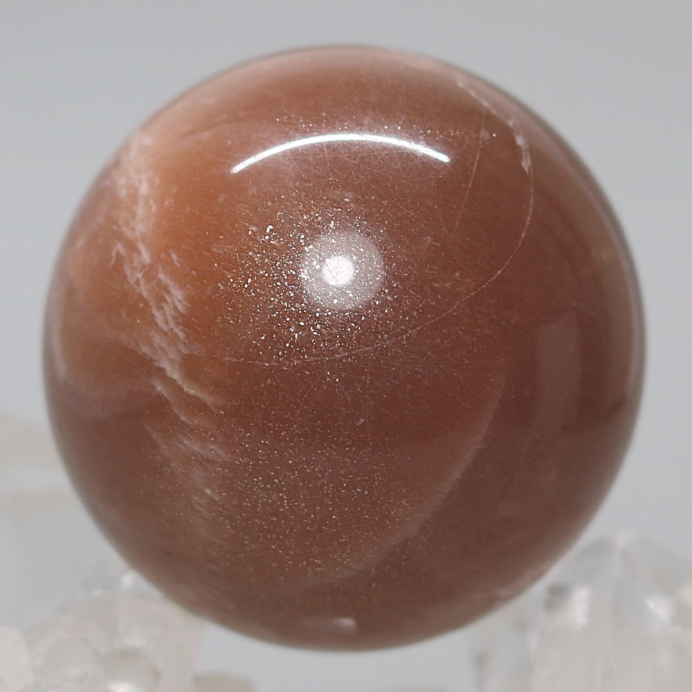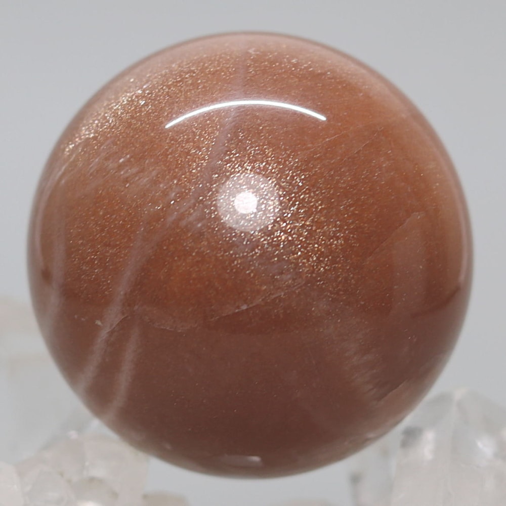 ホワイトシラー輝くオレンジブラウンベースの深みあるムーンストーンスフィア