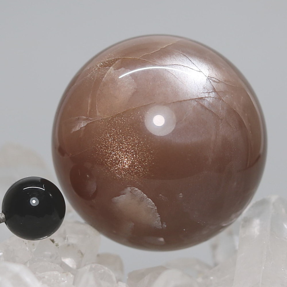 ホワイトシラー輝くオレンジブラウンベースの深みあるムーンストーンスフィア