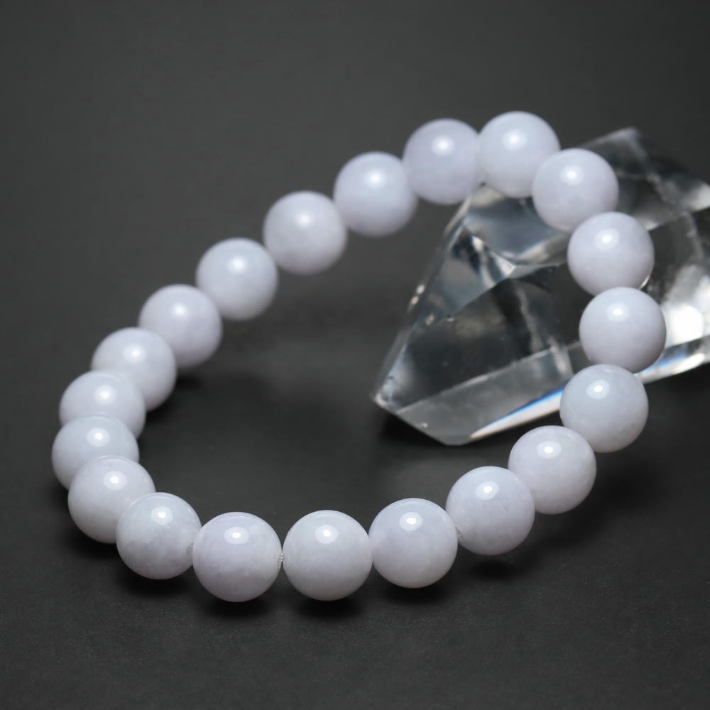 [高品質+]ミャンマー産天然ラベンダー翡翠ブレスレット(約10mm玉)¥51,000クイックガイド送料