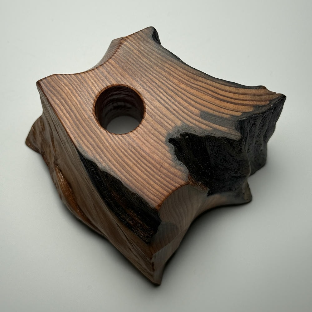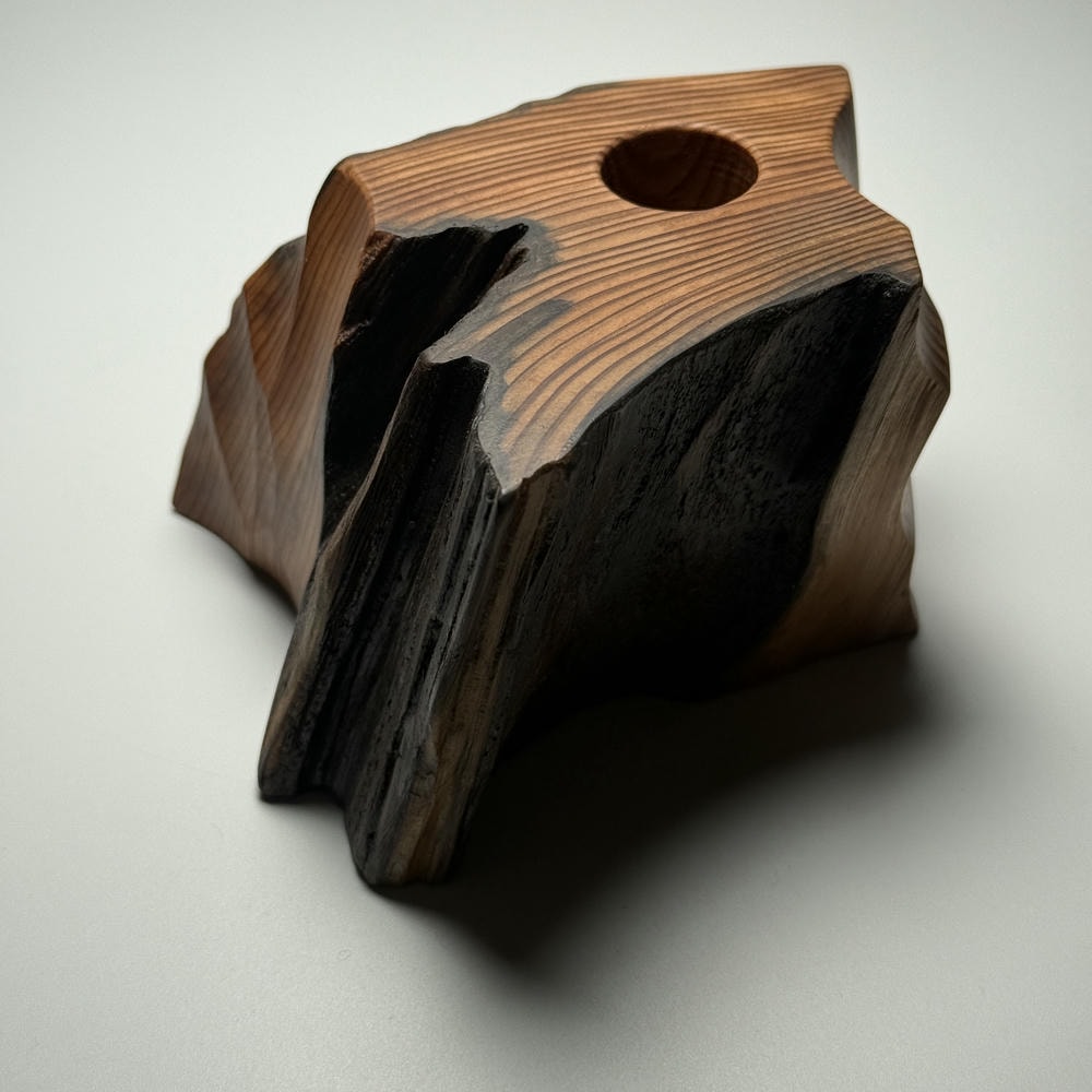 屋久島のご神木として広く知られ、樹齢1,000年を超えた木のみに許された呼称「屋久杉」を削り出し、ひとつひとつ作製した手工芸オリジナル木製台座でございます。