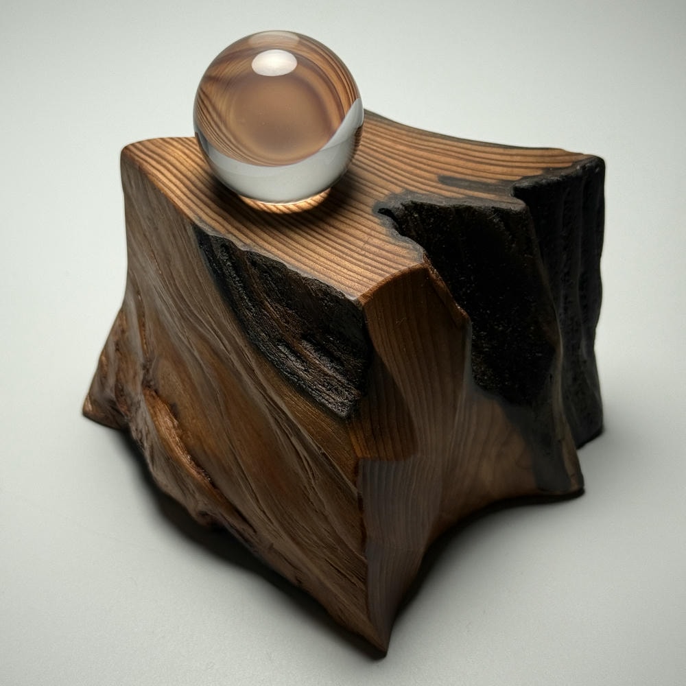 ご覧の屋久杉台座は、お色も形状もすべて異なる唯一無二の “1点物” でございます。