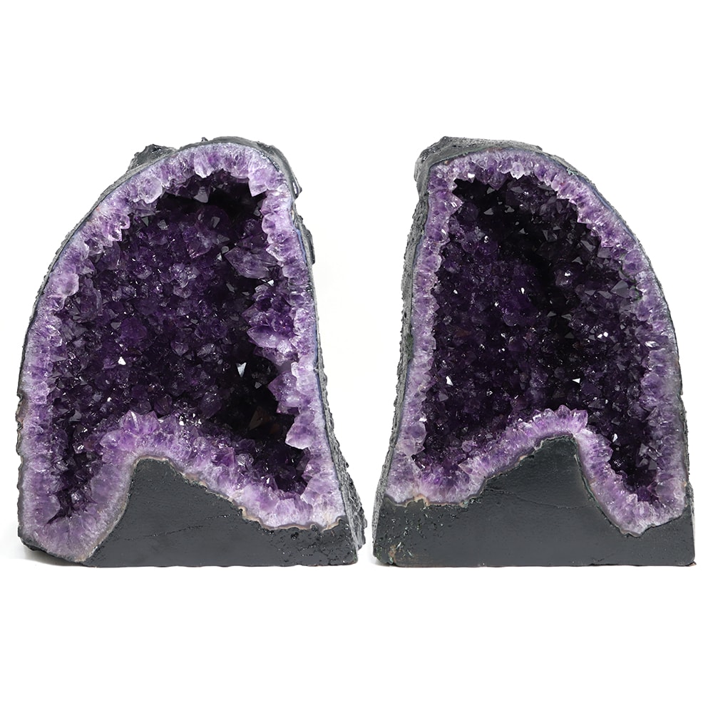 ご覧のお品は、どちらもが、ひとつのアメジストドームとしてディテールと結晶が美しいトップ品質!ドームの奥行きも深くどちらも約12cmと左右対称である点も見逃せない価値!