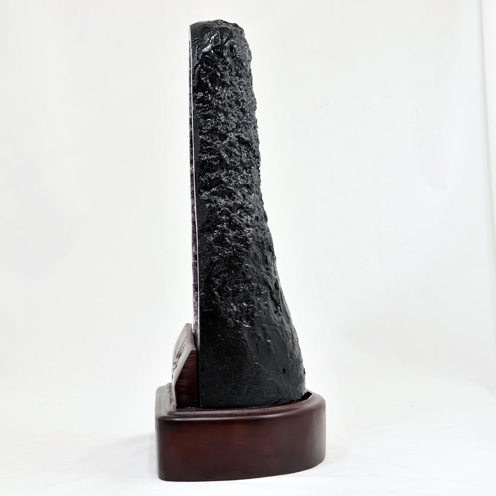 買い付けたアメジストドームに合わせて、ぴったりフィットするよう別注★前面にはシンプルな装飾も彫られ、アメジストドームをワンランク上のオブジェに昇華させてくれています。