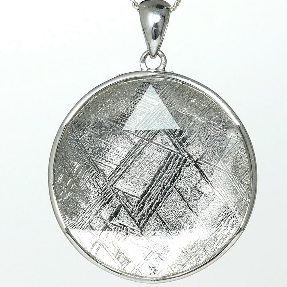 ギベオン隕石に、六芒星を象った両面コーティングを施すことでキラキラと輝く美しいペンダントトップに仕上げました。