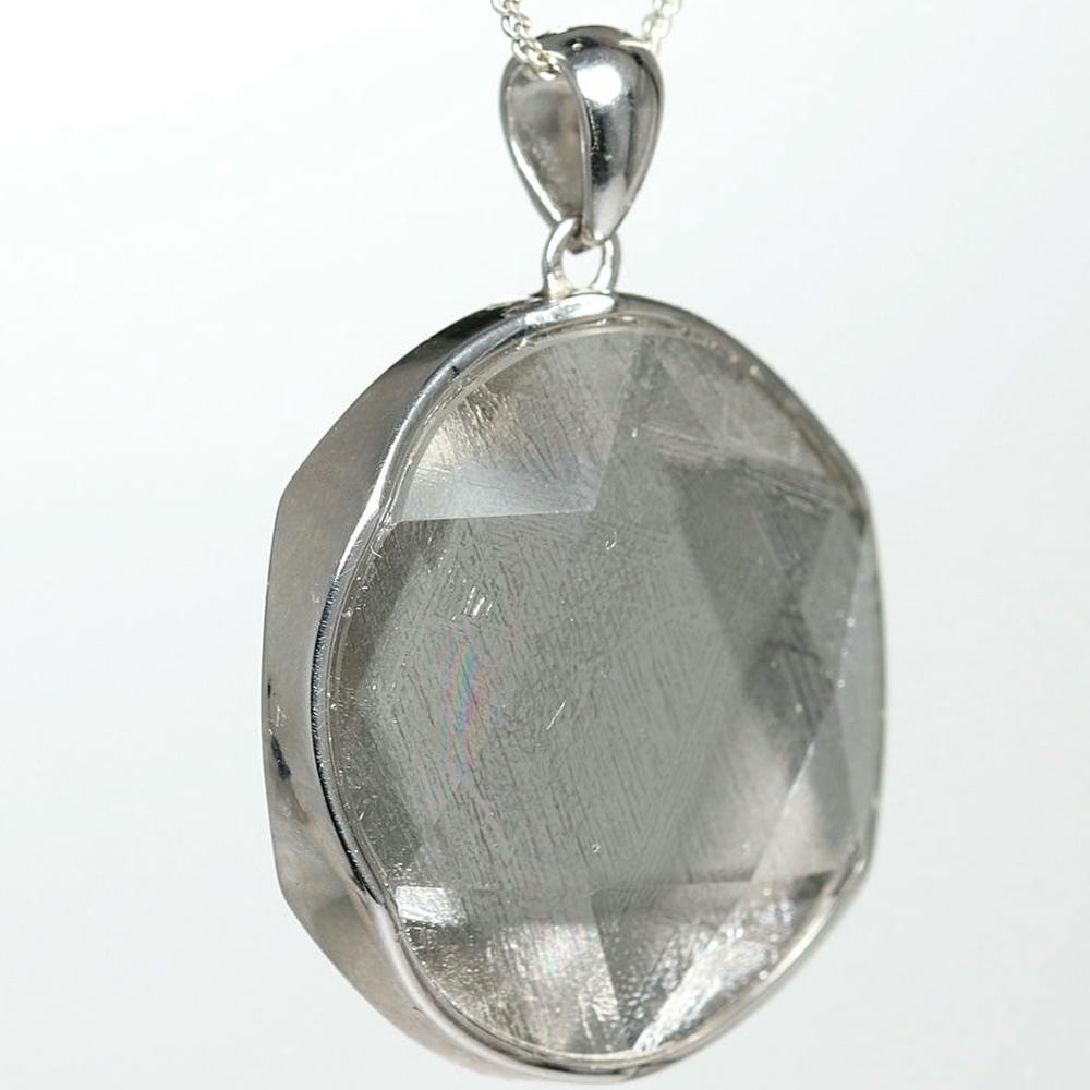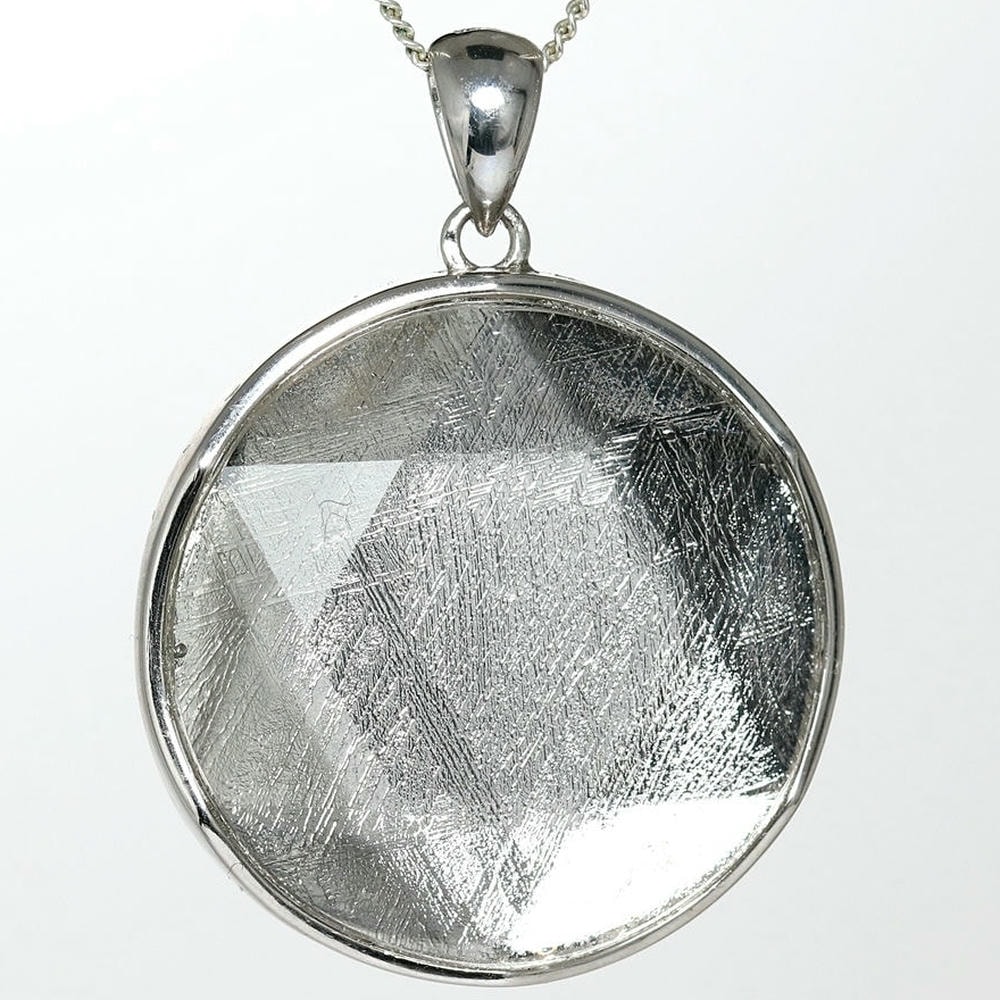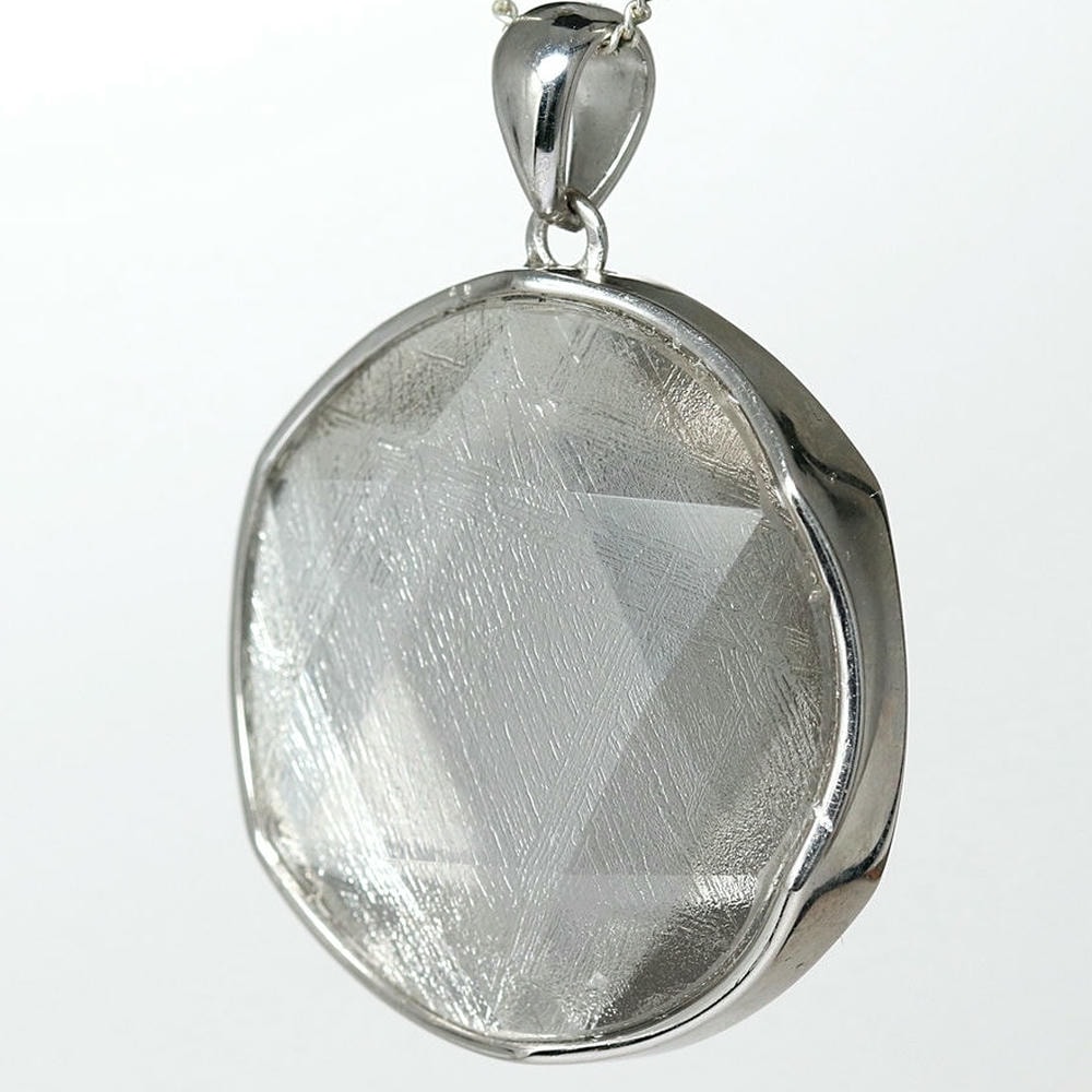ギベオン隕石に、六芒星を象った両面コーティングを施すことでキラキラと輝く美しいペンダントトップに仕上げました。