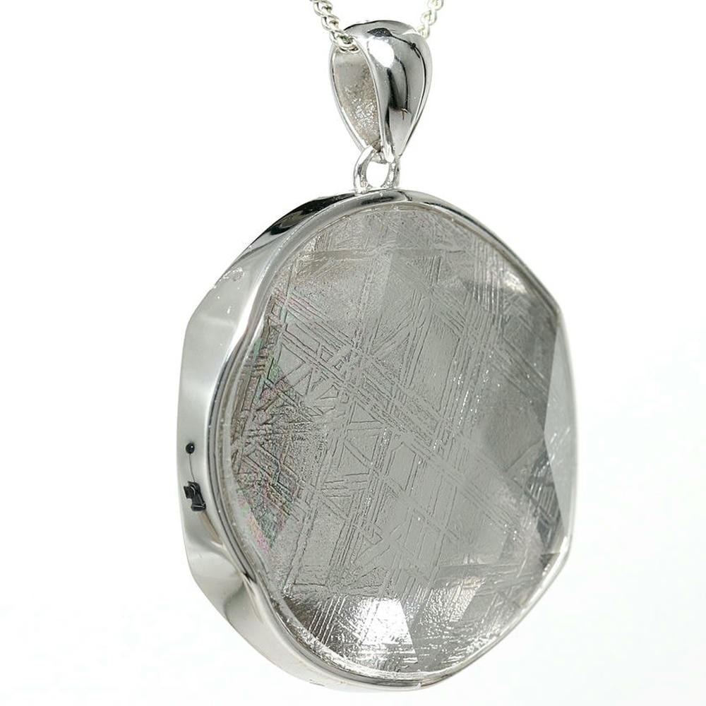 ギベオン隕石に、六芒星を象った両面コーティングを施すことでキラキラと輝く美しいペンダントトップに仕上げました。