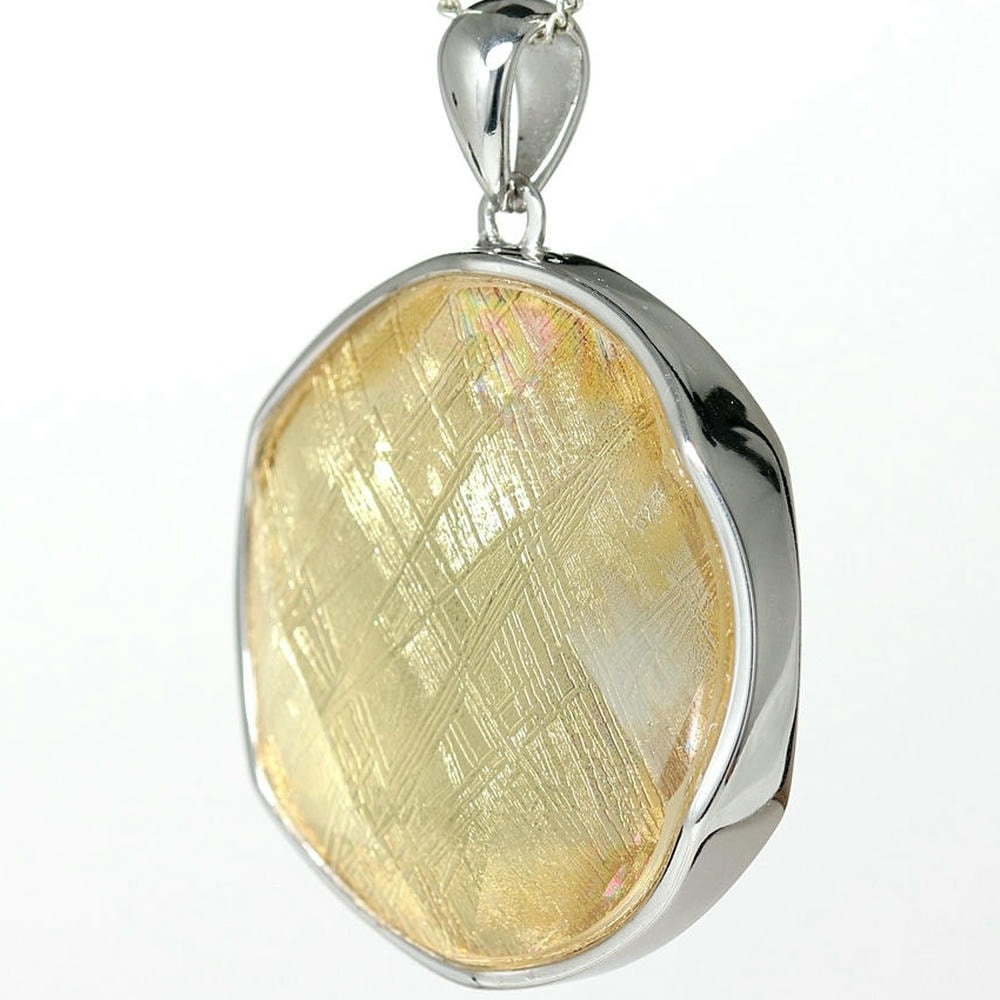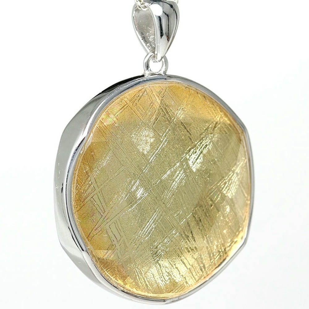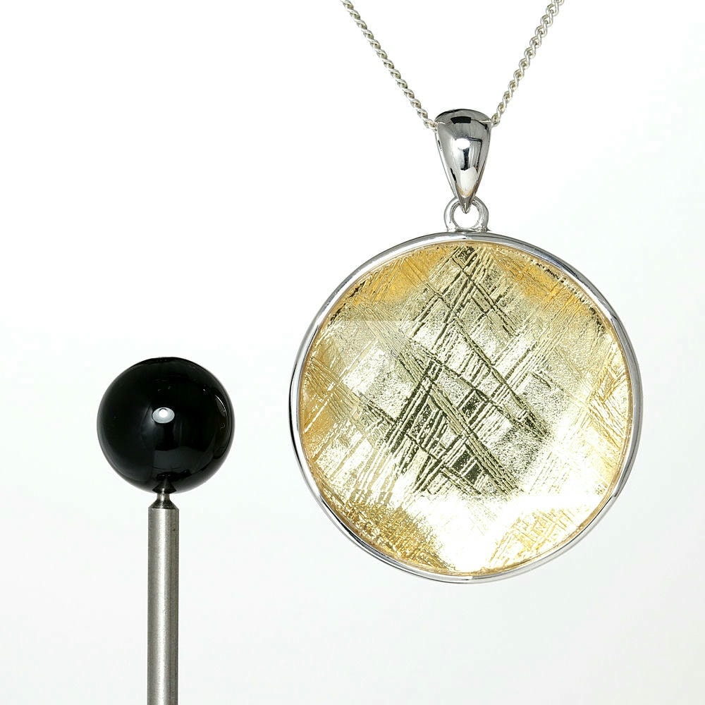 ギベオン隕石に、六芒星を象った両面コーティングを施すことでキラキラと輝く美しいペンダントトップに仕上げました。