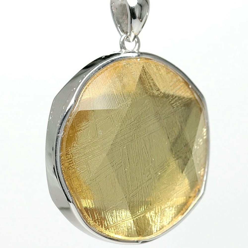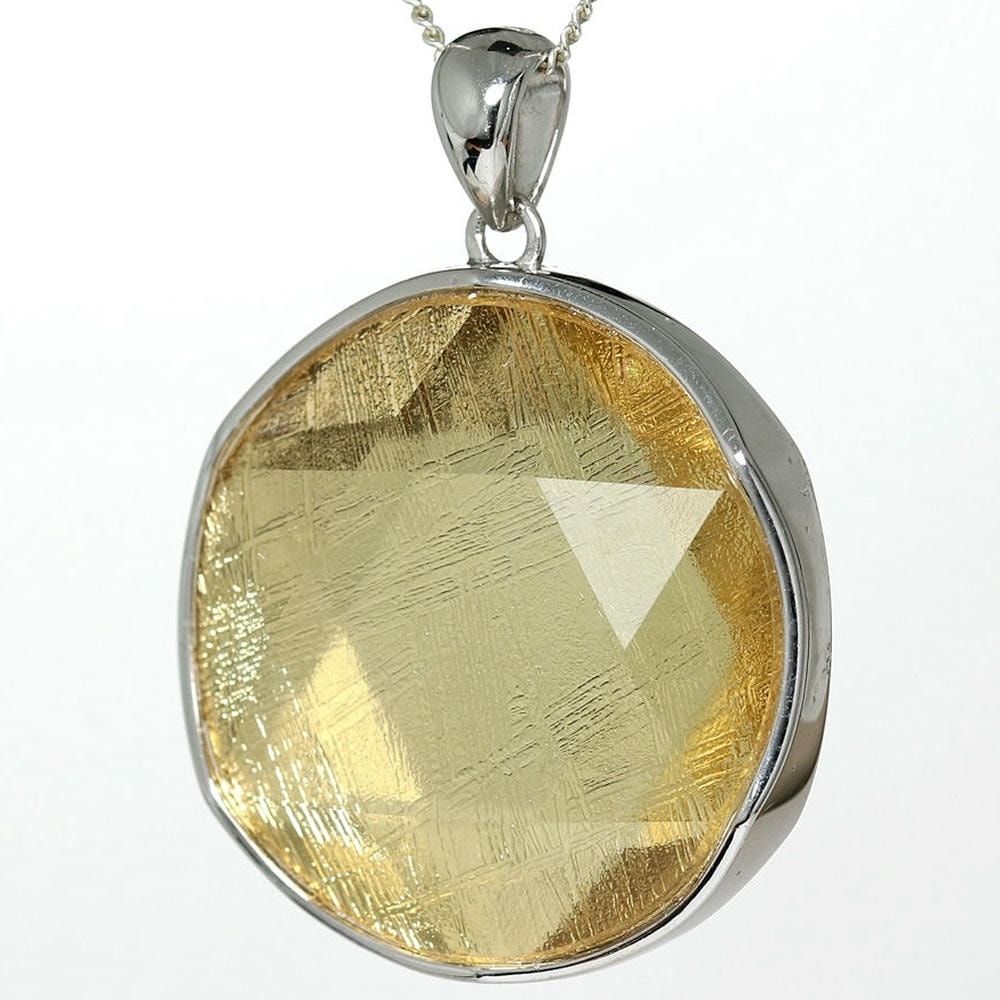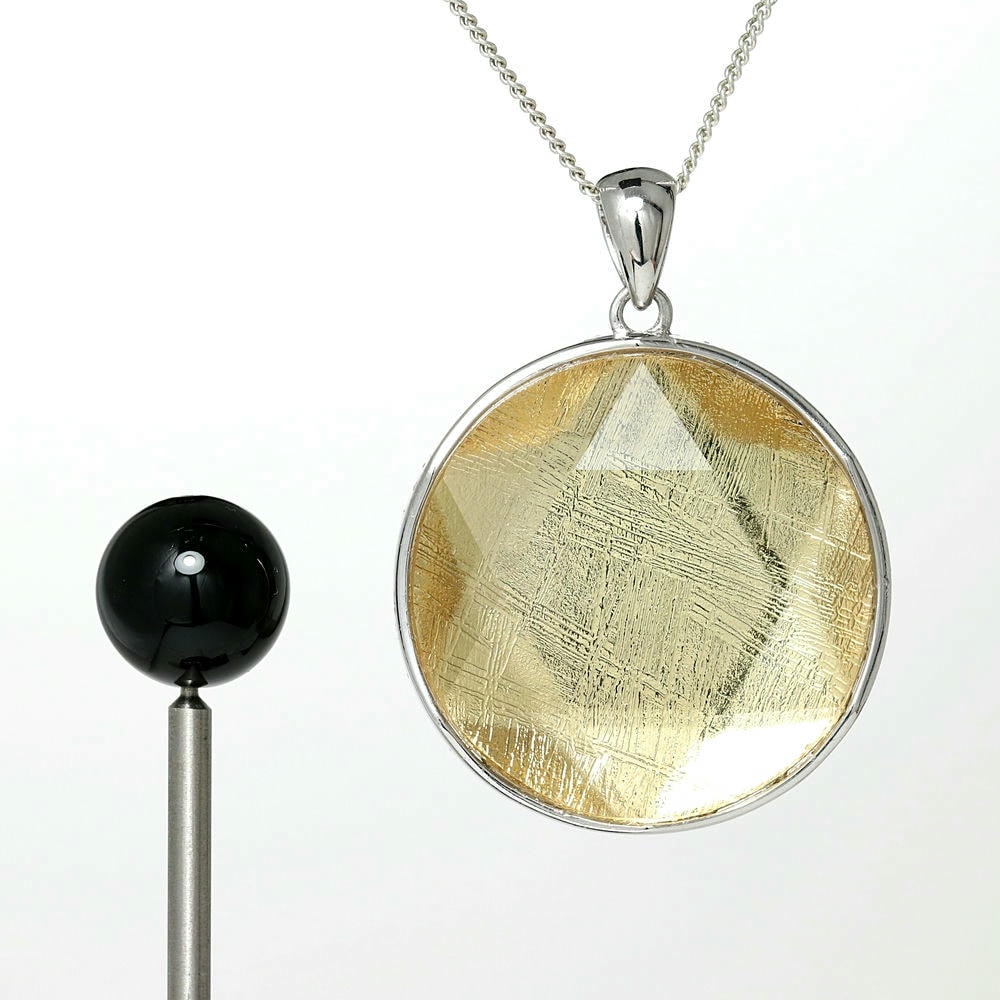 ギベオン隕石に、六芒星を象った両面コーティングを施すことでキラキラと輝く美しいペンダントトップに仕上げました。