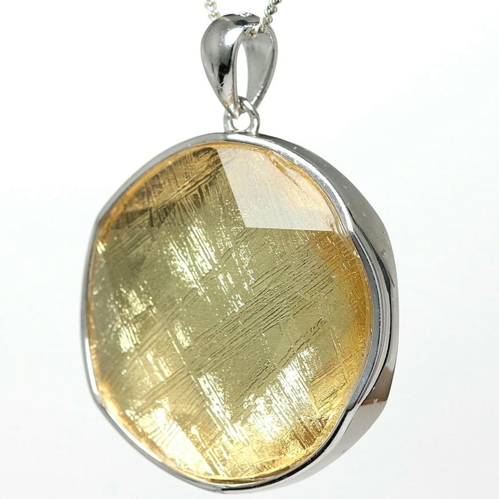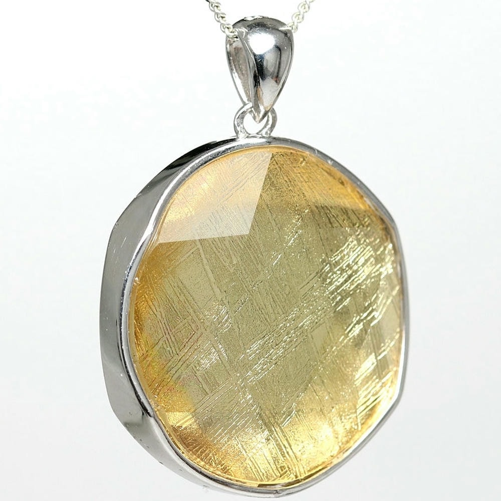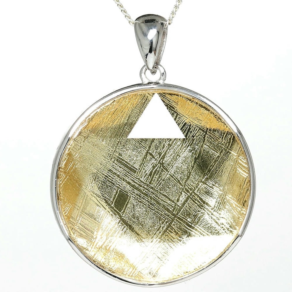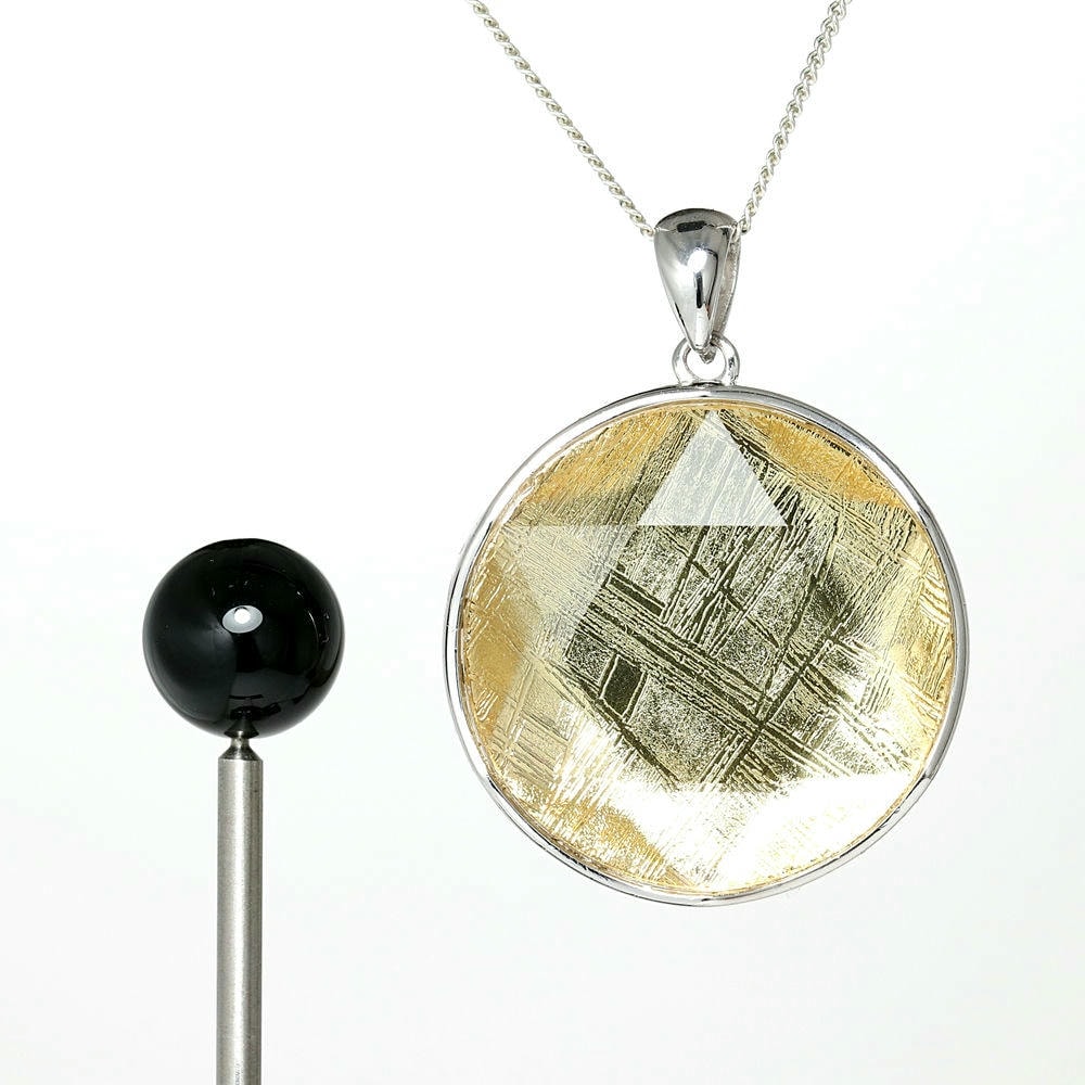 ギベオン隕石に、六芒星を象った両面コーティングを施すことでキラキラと輝く美しいペンダントトップに仕上げました。