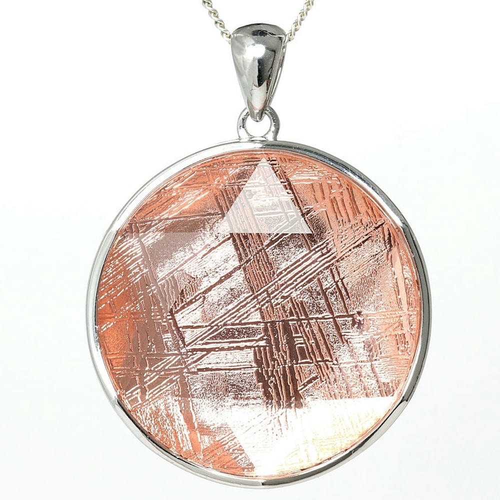 ギベオン隕石に、六芒星を象った両面コーティングを施すことでキラキラと輝く美しいペンダントトップに仕上げました。