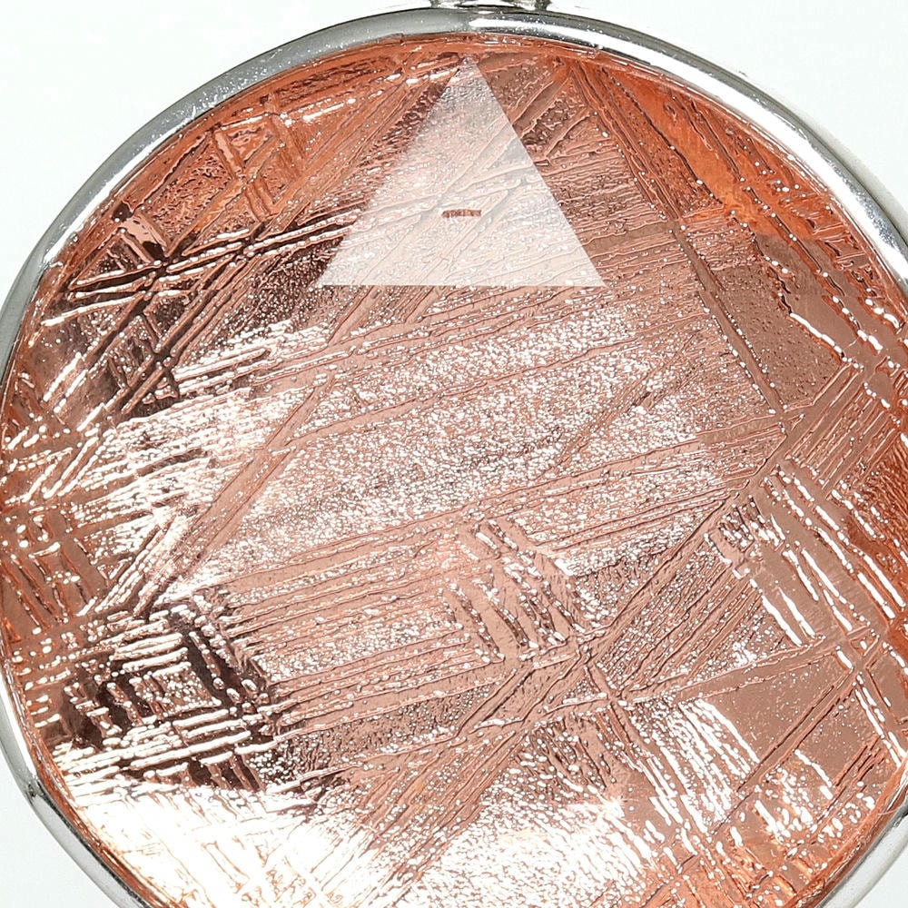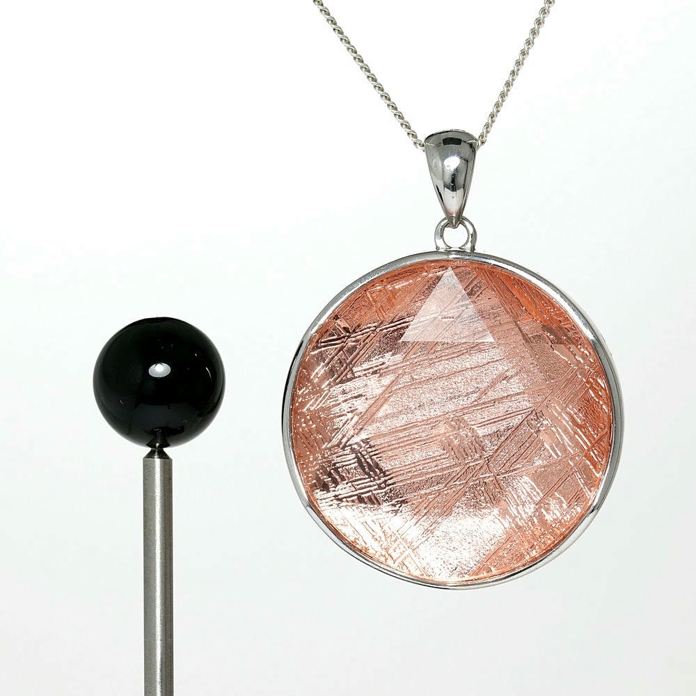 ギベオン隕石に、六芒星を象った両面コーティングを施すことでキラキラと輝く美しいペンダントトップに仕上げました。