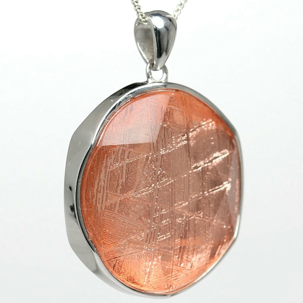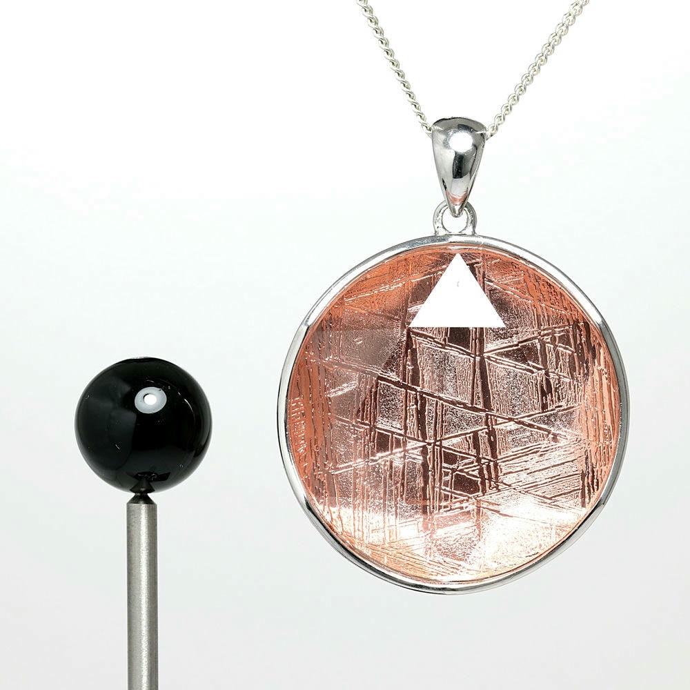 ギベオン隕石に、六芒星を象った両面コーティングを施すことでキラキラと輝く美しいペンダントトップに仕上げました。