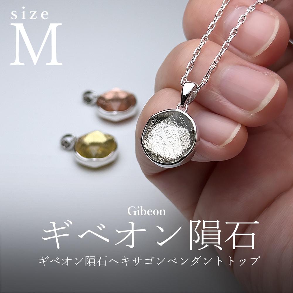 こちらのお品は、直径約13.5mmの小ぶりサイズ(M)の、ギベオンヘキサゴンペンダントトップでございます。