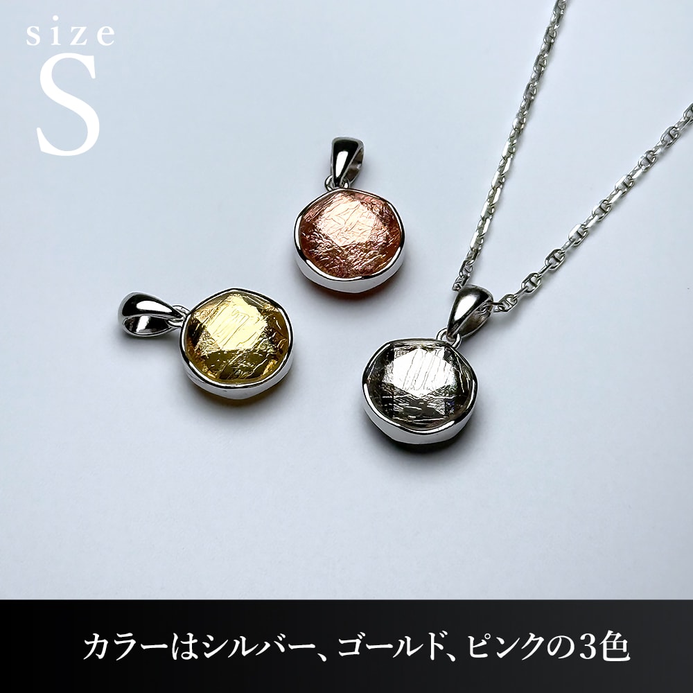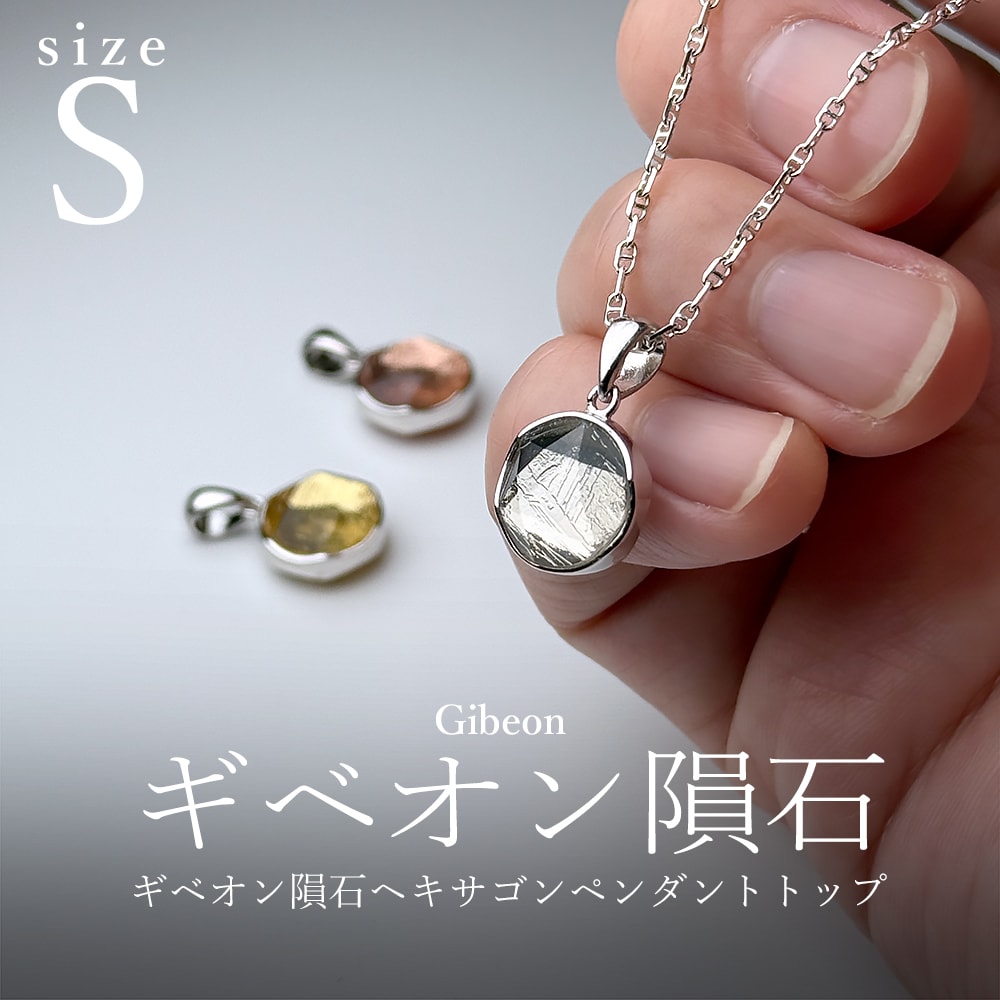 こちらのお品は、直径約11mmの小さめサイズ(S)の、ギベオンヘキサゴンペンダントトップでございます。