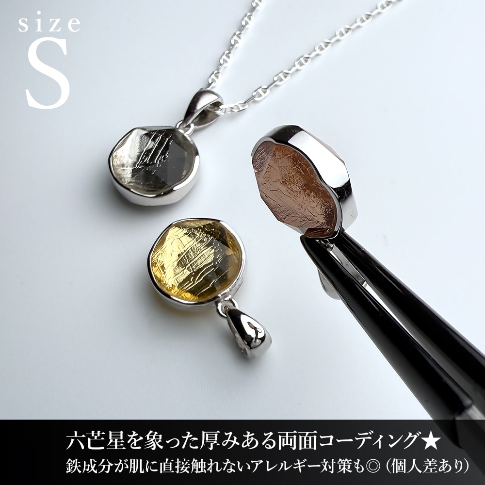 ギベオン隕石に、六芒星を象った両面コーティングを施すことでキラキラと輝く美しいペンダントトップに仕上げました。