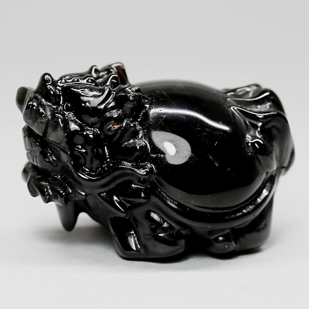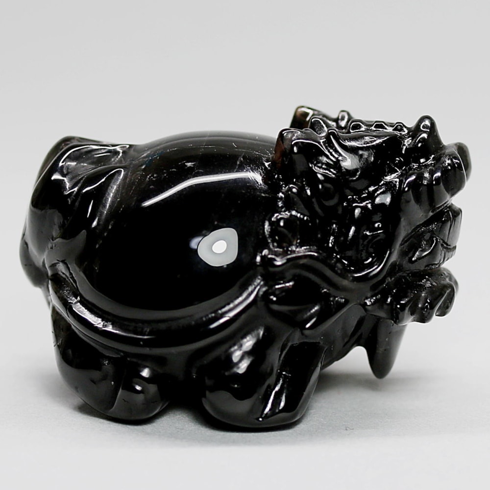 [中国/山東省産]モリオン彫刻/天然黒水晶(龍亀/ロングイ)