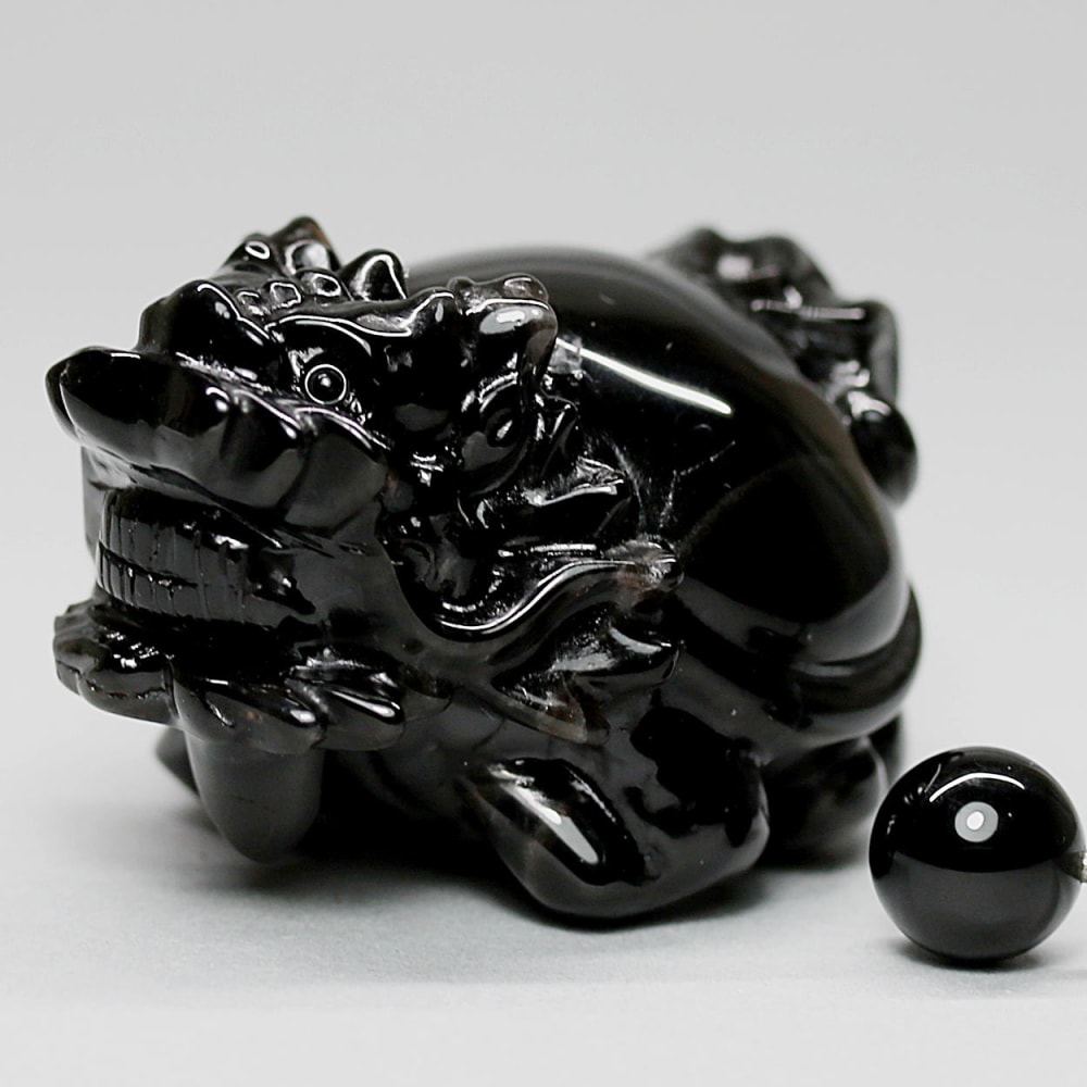 安定した財運!漆黒のモリオン「龍亀/ロングイ」彫刻